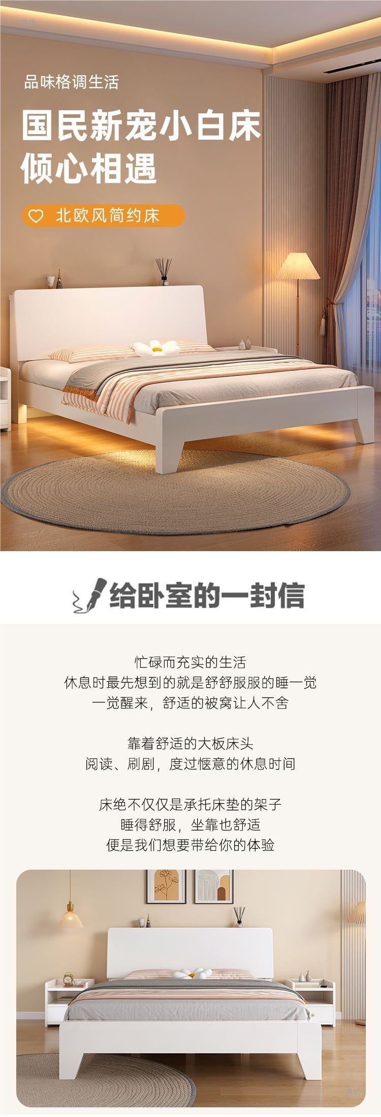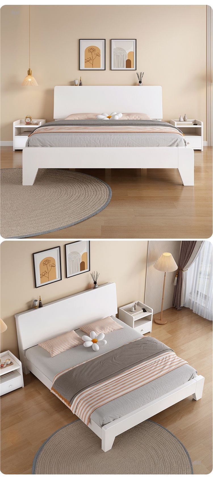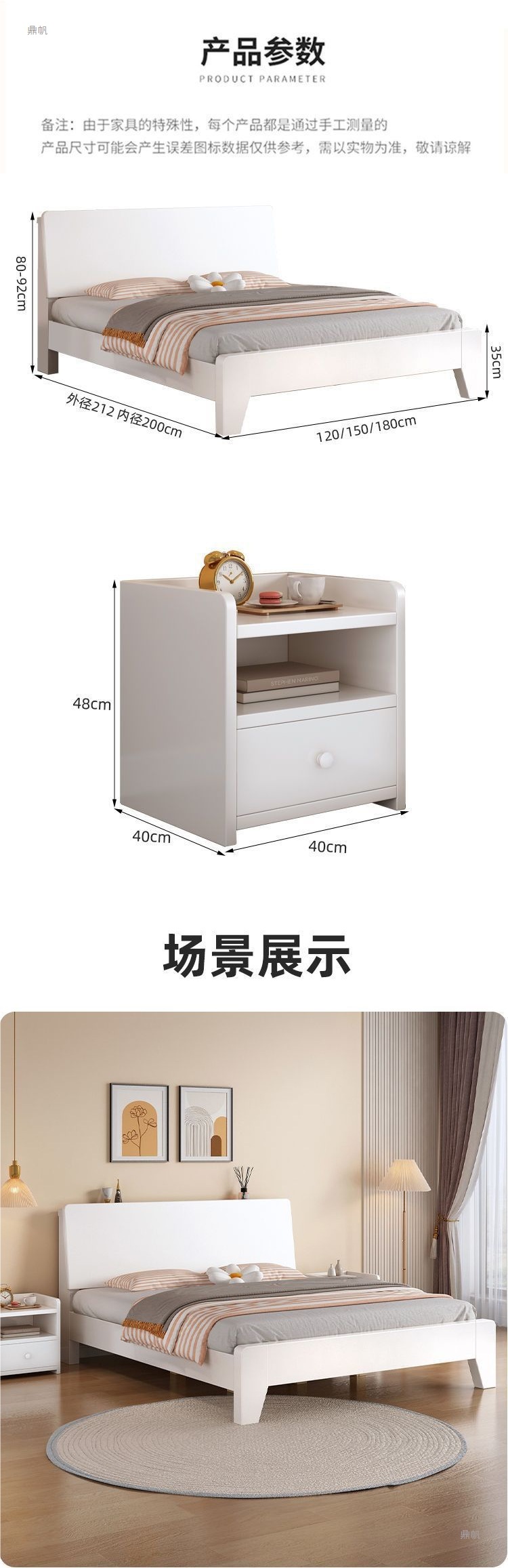 • 따뜻한 흰색 침대 + 이중 캐비닛 + 패키지 설치