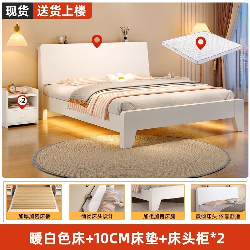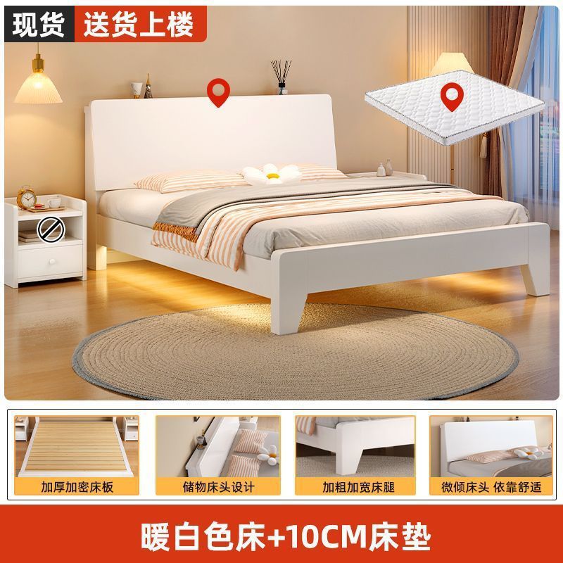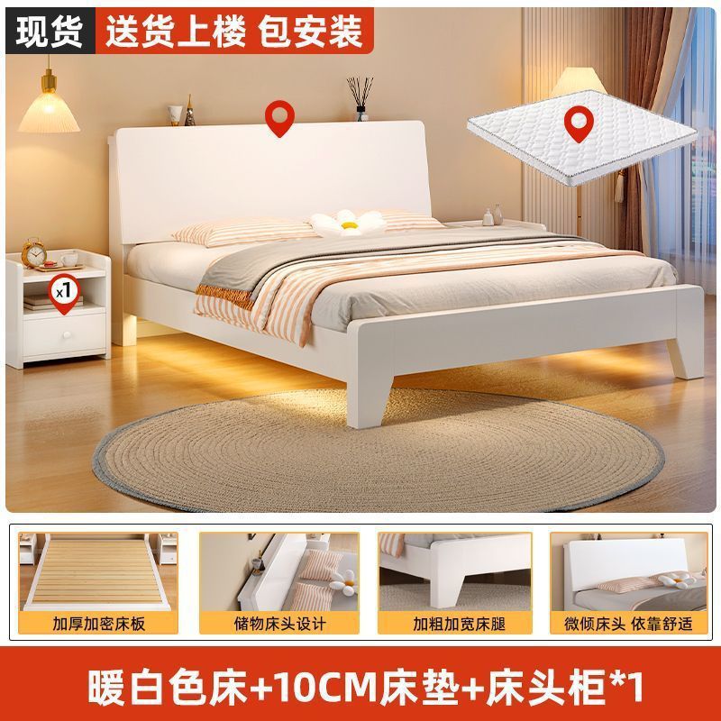 • 따뜻한 흰색 침대 + 10CM 매트 + 단일 캐비닛 + 패키지 설치