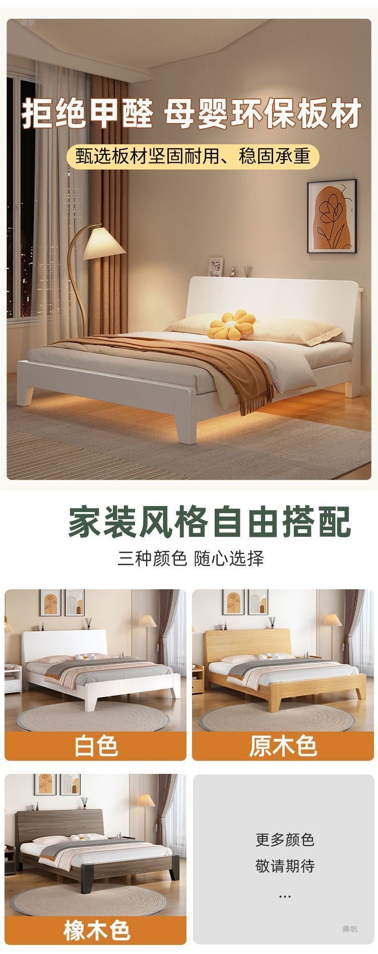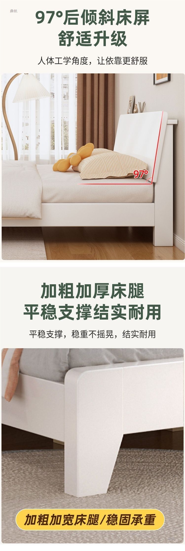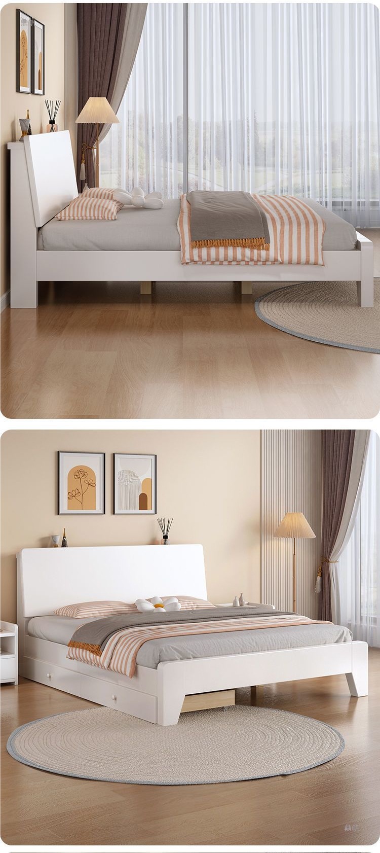 • 따뜻한 흰색 원목 침대 프레임 [색상 선택]