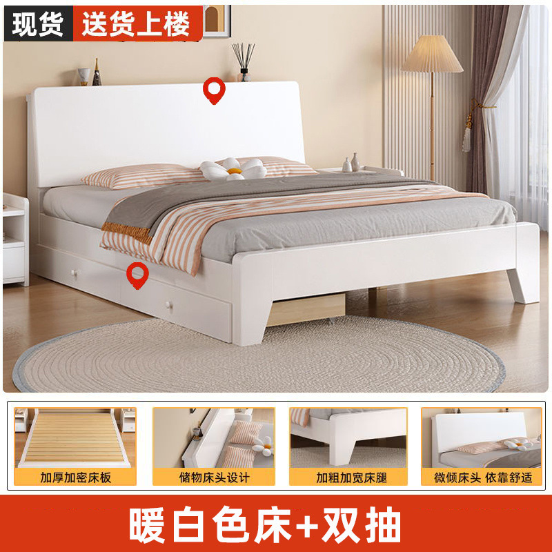 • 따뜻한 흰색 침대 + 이중 서랍 + 설치 패키지