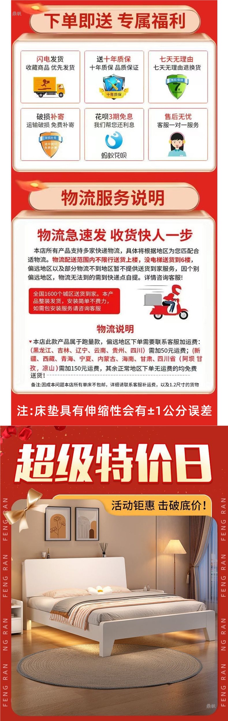 • 따뜻한 흰색 침대 + 10CM 쿠션 + 패키지 설치