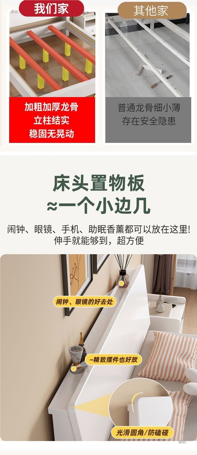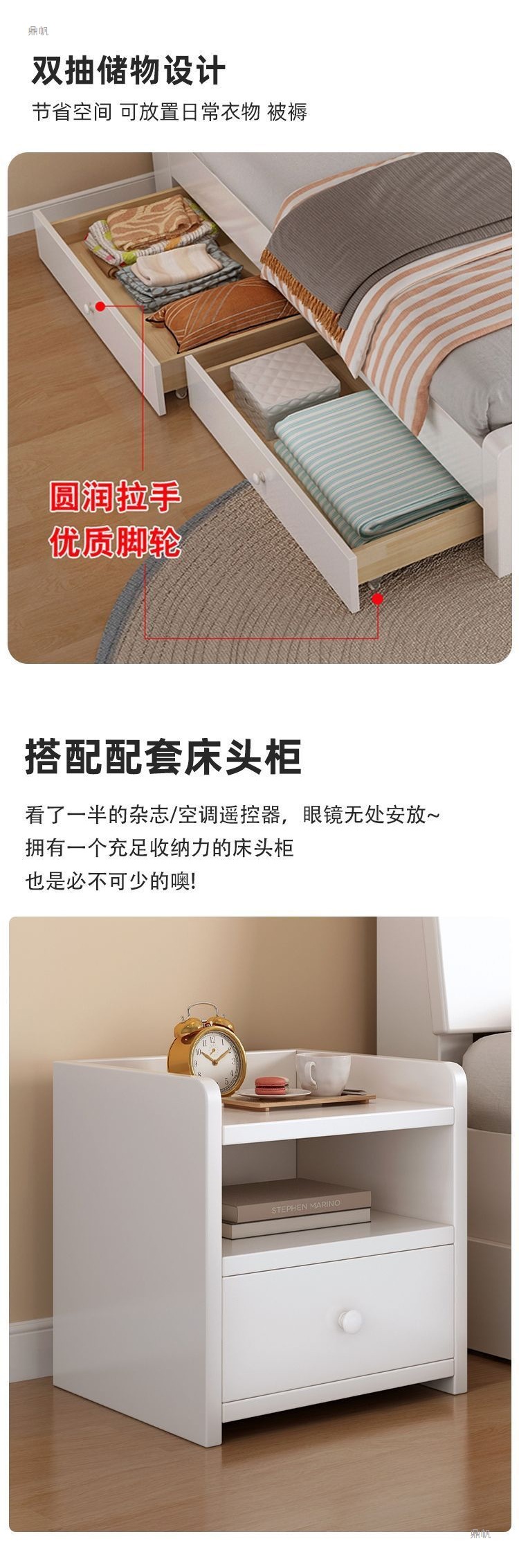 • 따뜻한 흰색 침대 + 5CM 쿠션 + 이중 서랍 설치