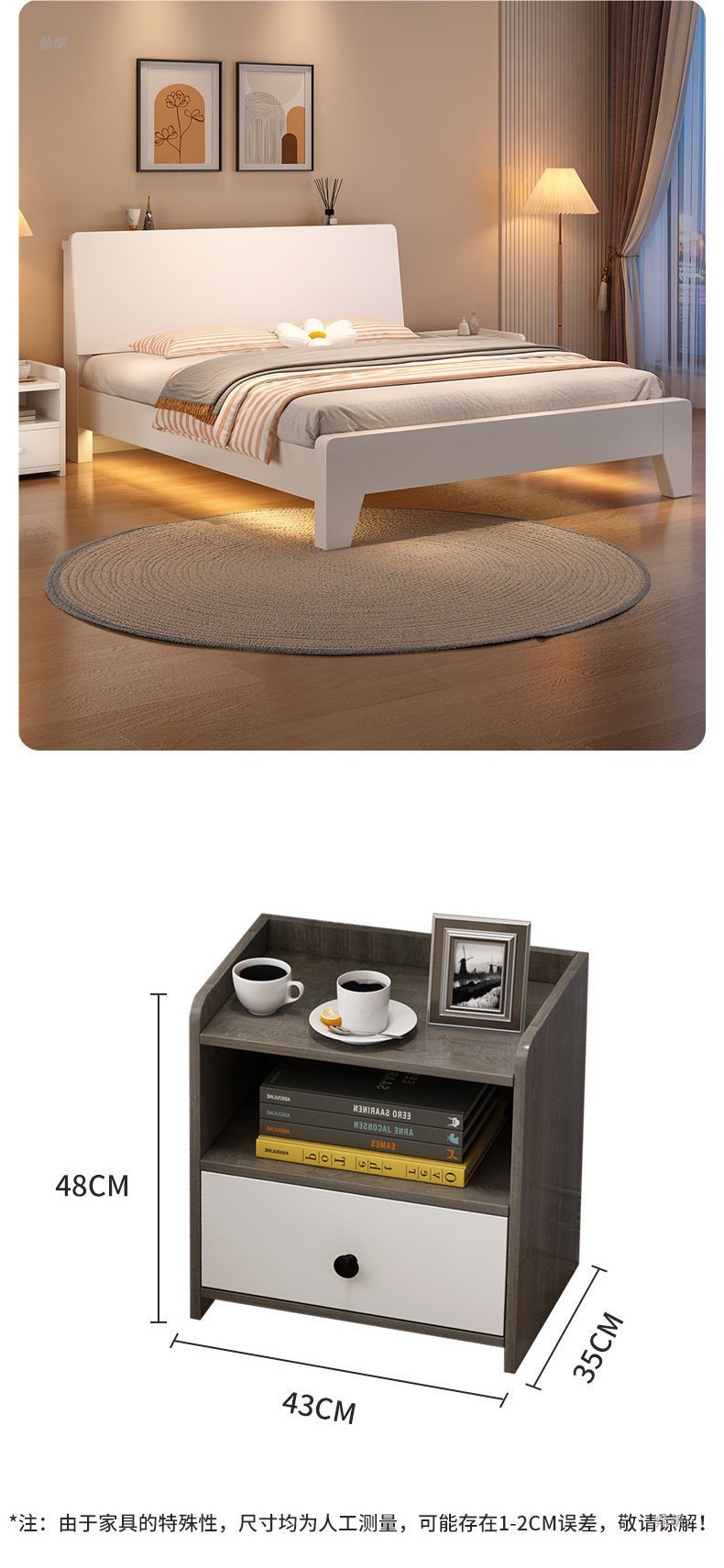 • 따뜻한 흰색 침대 + 5CM 매트 + 단일 캐비닛 패키지 설치