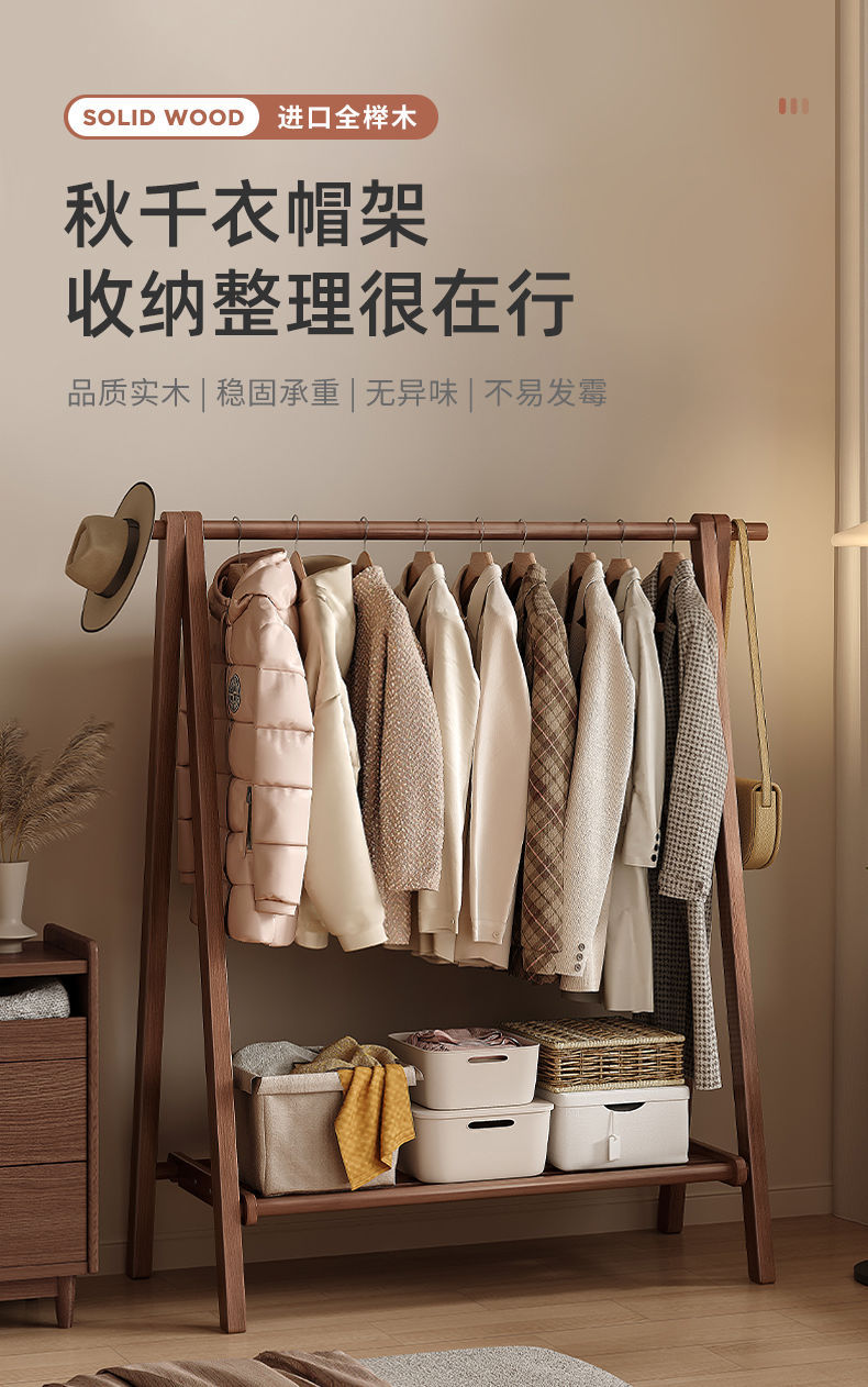 모든 너도밤 나무 코트 랙 저장 랙 통합 바닥 걸이 두꺼운 단단한 나무 수직 건조 랙 침실스토어 가기