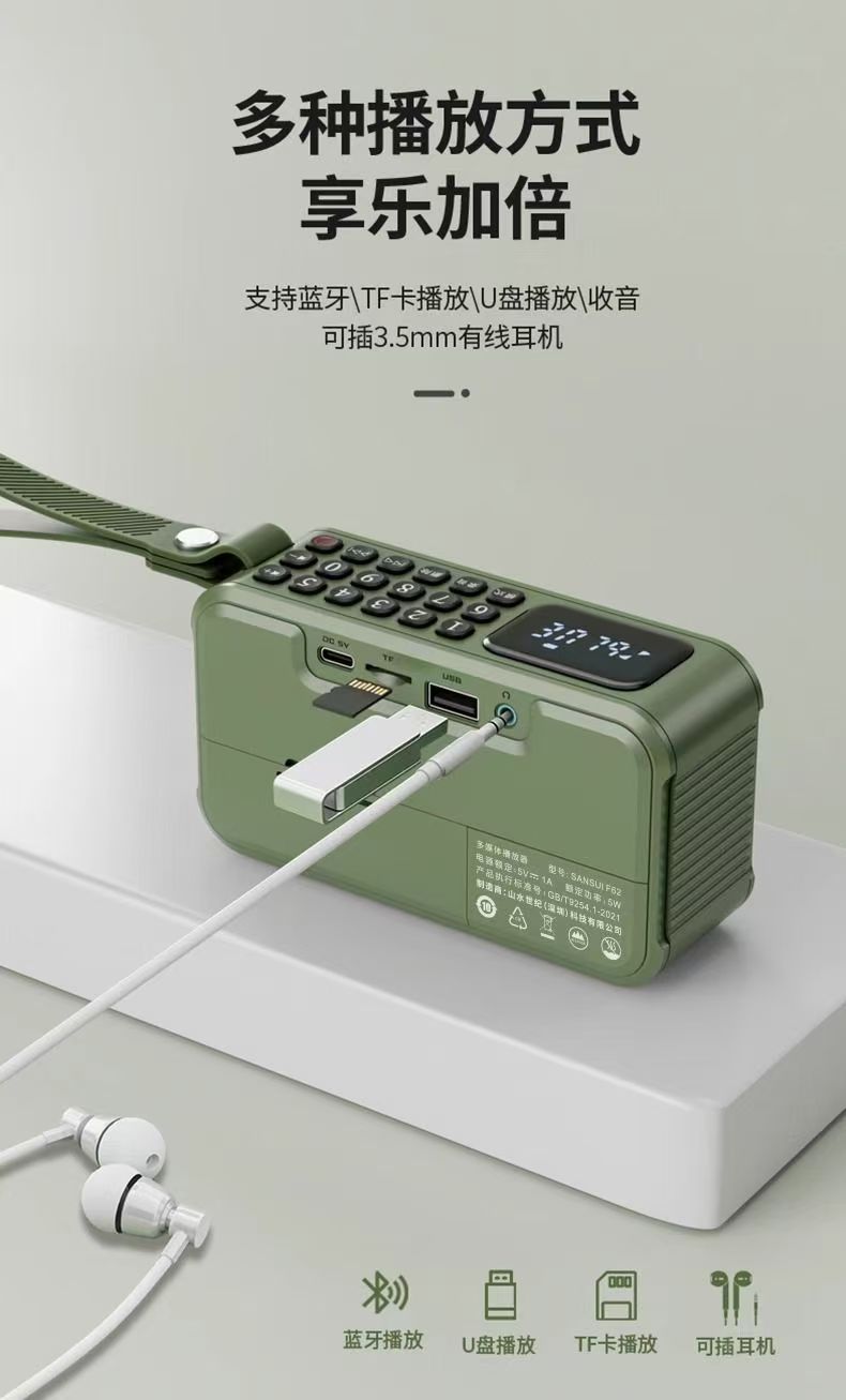 Shanshui F26 블루투스 5.3 작은 스피커 지원 U 디스크 TF 카드 디지털 노래 선택 기능 FM 라디오 긴 배터리 수명 분리 가능스토어 가기
