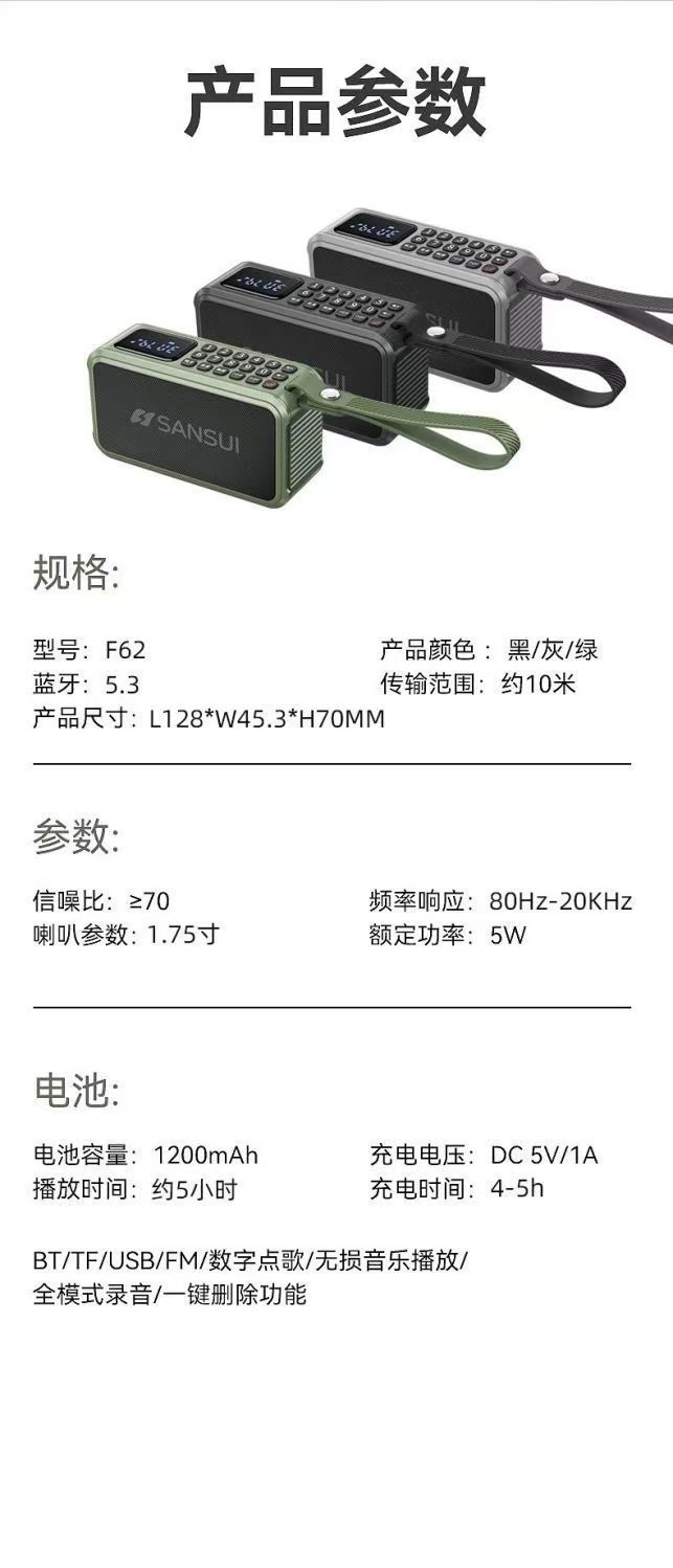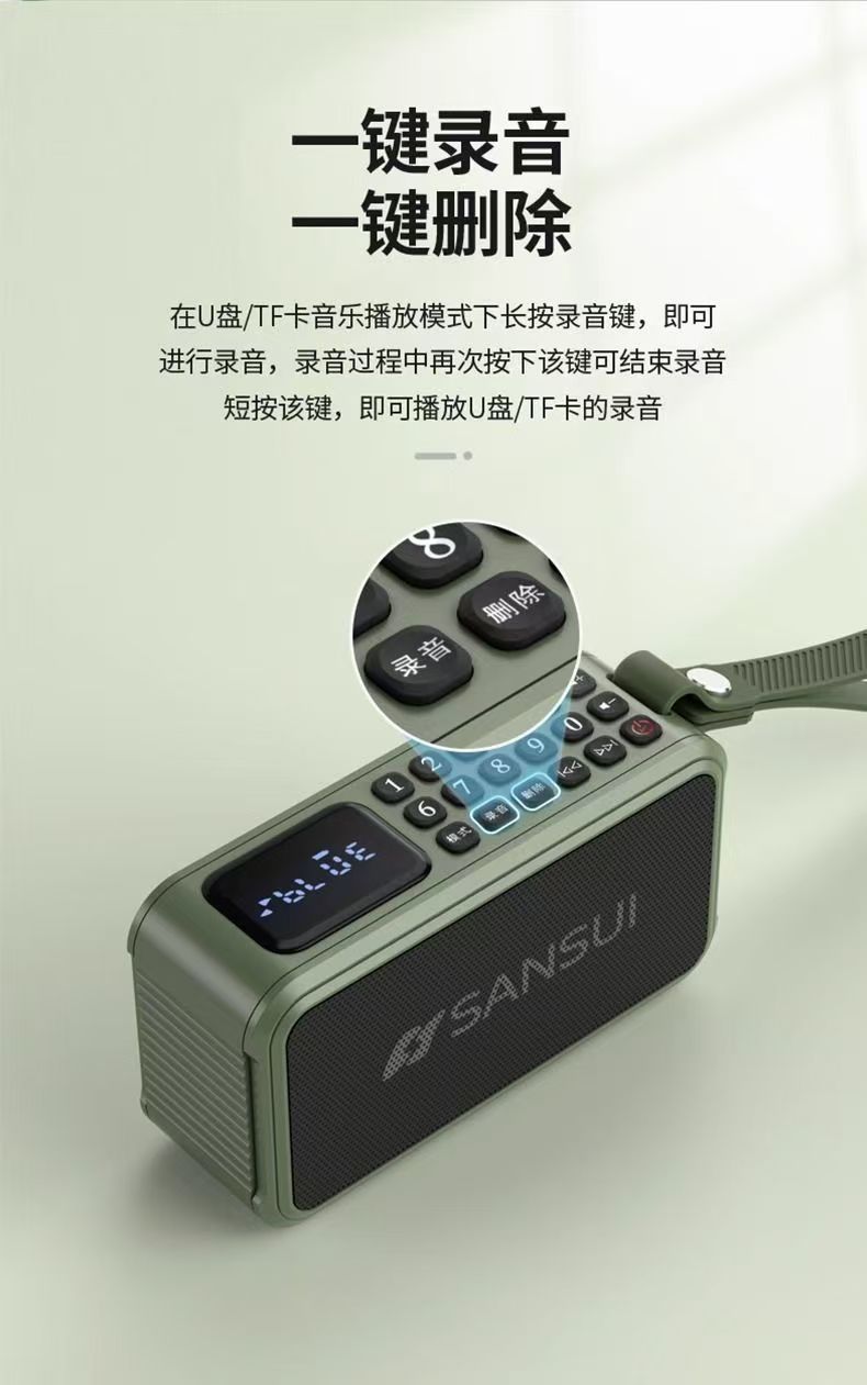 Shanshui F26 블루투스 5.3 작은 스피커 지원 U 디스크 TF 카드 디지털 노래 선택 기능 FM 라디오 긴 배터리 수명 분리 가능