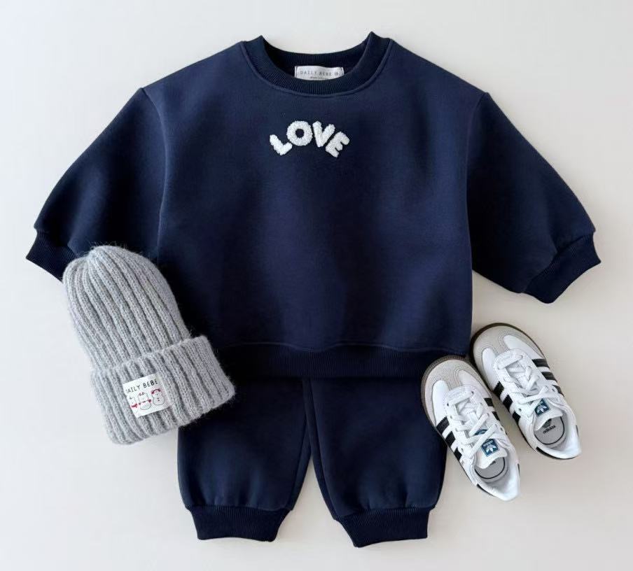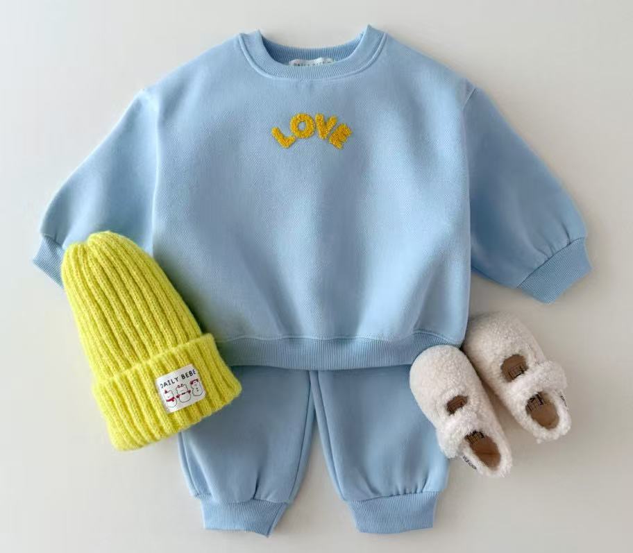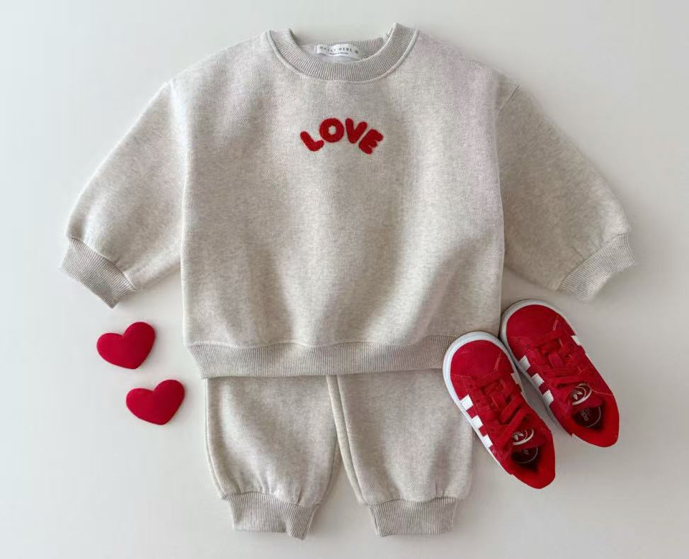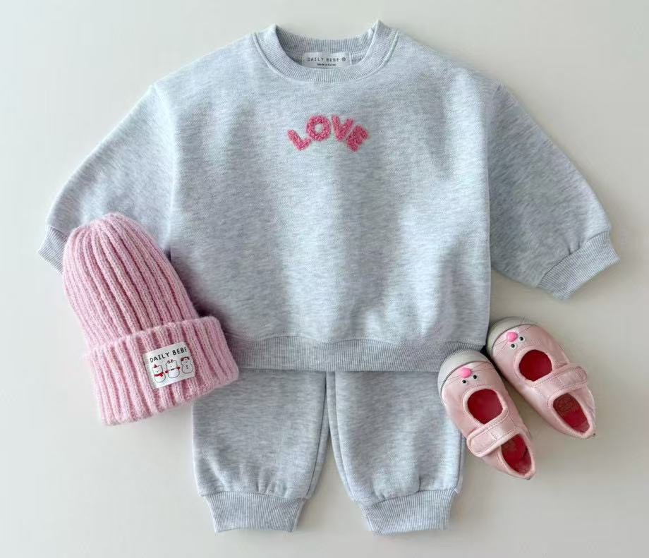 春秋款LOVE毛巾绣纯色休闲运动卫衣长袖+长裤两件套