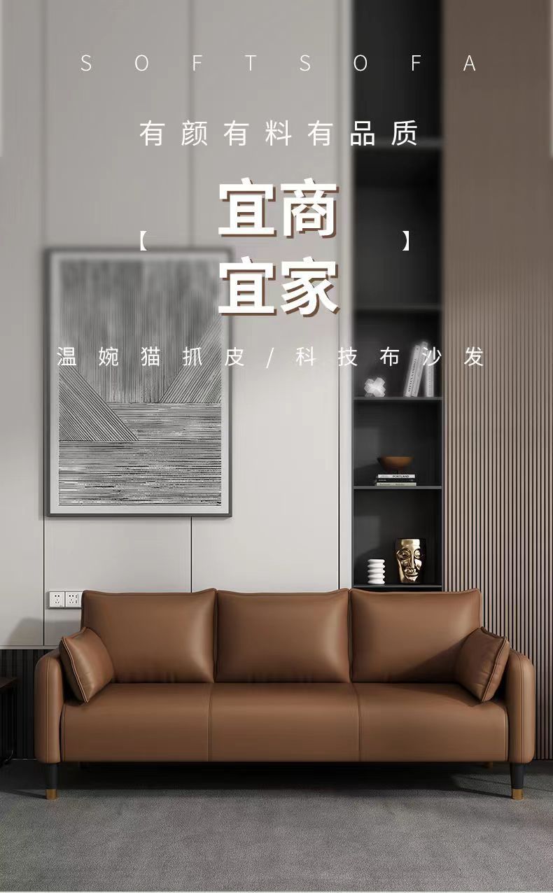 고양이 발톱 가죽 소파 거실 작은 아파트 현대 간단한 아파트 빛 고급 침실 임대 방 더블 3 인 의류 매장