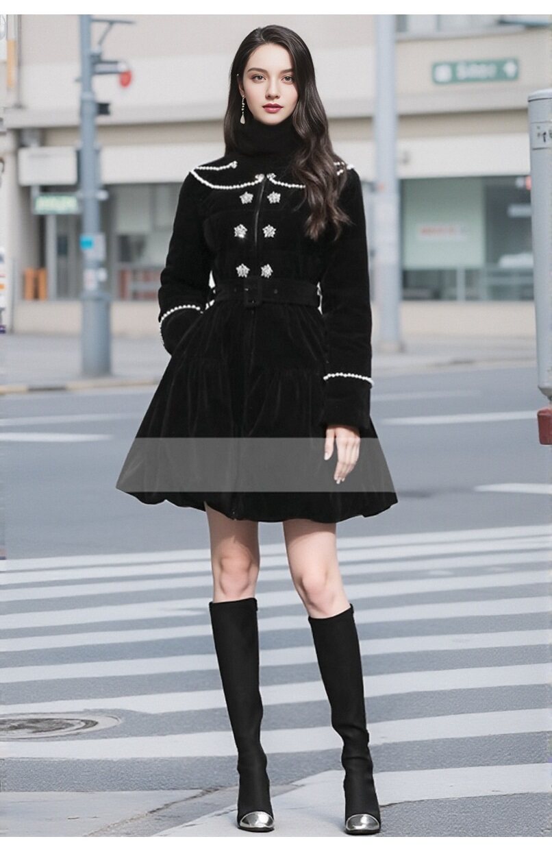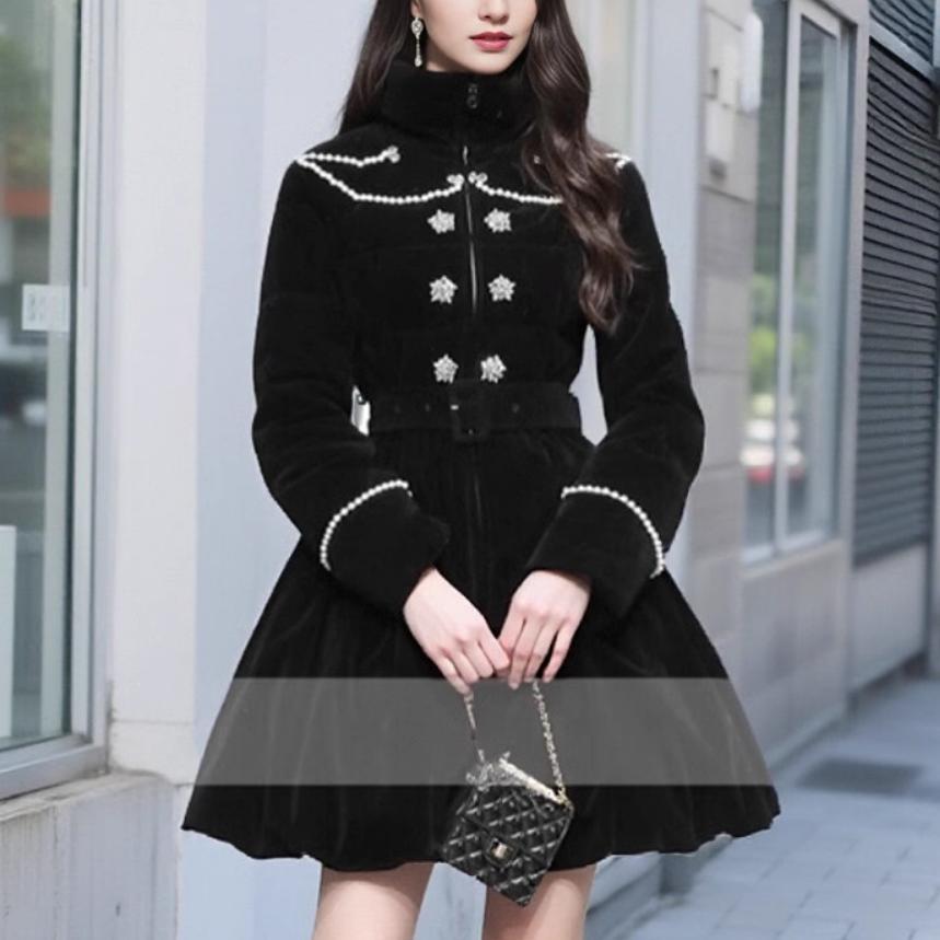겨울 새로운 여성 벨벳 궁전 스타일 진주 달콤한 짧은 재킷 90 흰 오리스토어 가기