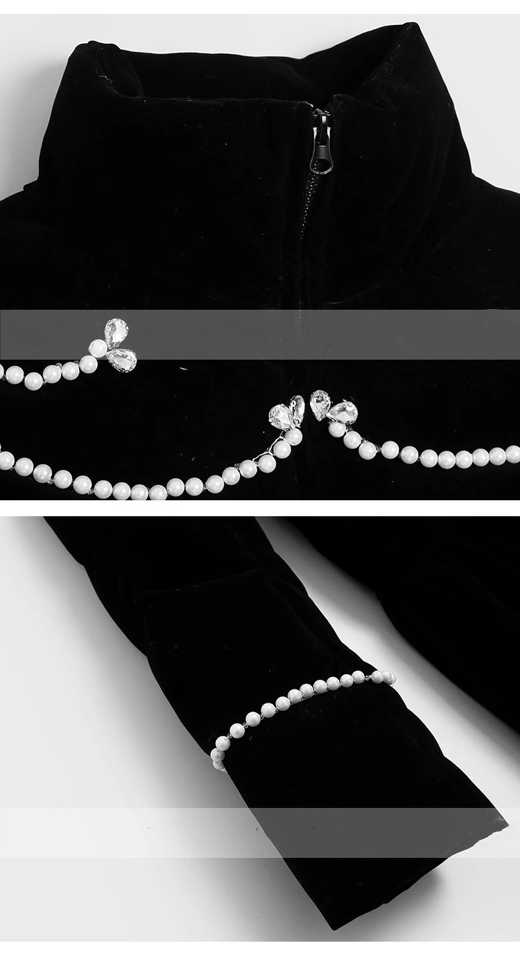 겨울 새로운 여성 벨벳 궁전 스타일 진주 달콤한 짧은 재킷 90 흰 오리