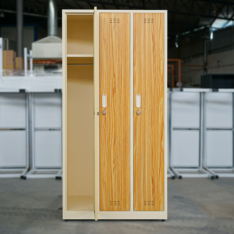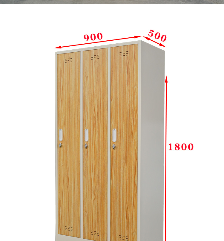 냉간 압연 강철 이중 도어 옷장 3 도어 철 보관 캐비닛 목재 곡물 전송 인쇄 학생 기숙사 직원 침실 홈 가방