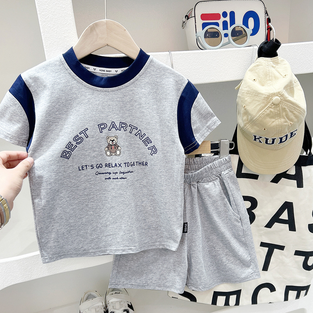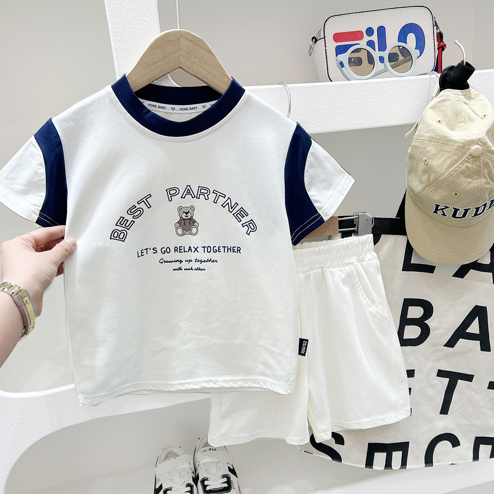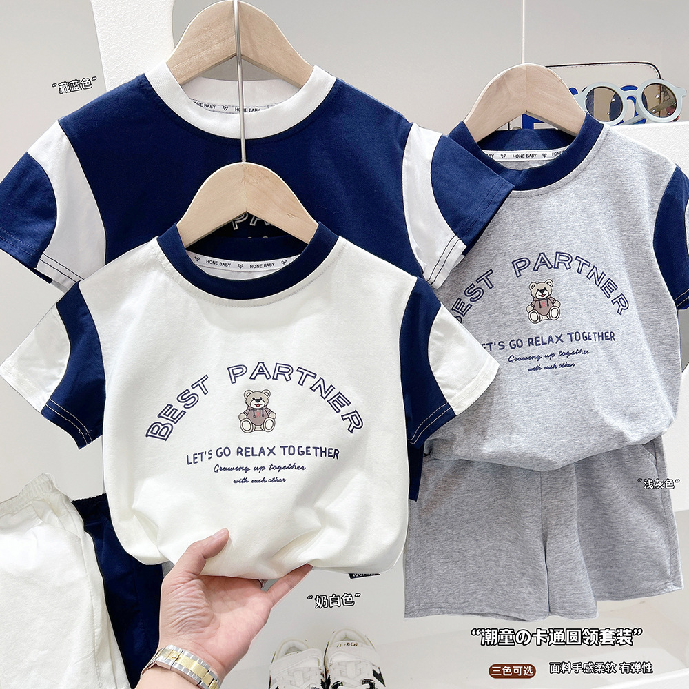 남자들의 여름 반팔 세트 2025 새로운 어린이 반바지 어린이 만화 스포츠 반팔 티셔츠 투피스 세트스토어 가기
