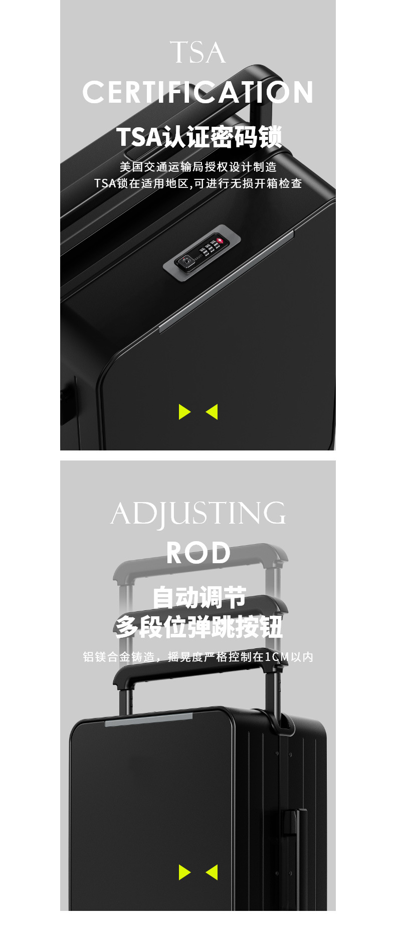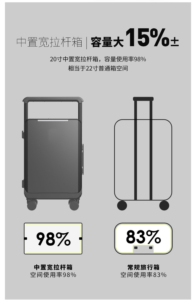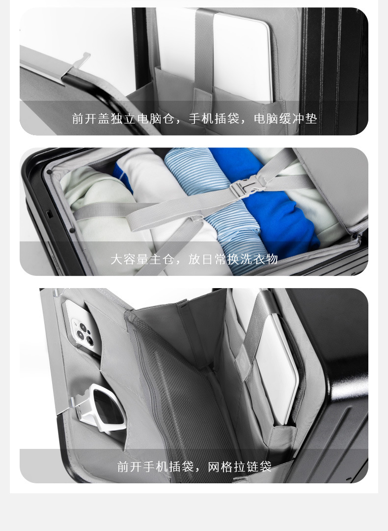 2025 새로운 프론트 오프닝 와이드 풀로드 PC 수하물 20 인치 탑승 상자 남성과 여성의 24 인치 비밀번호 여행 가방