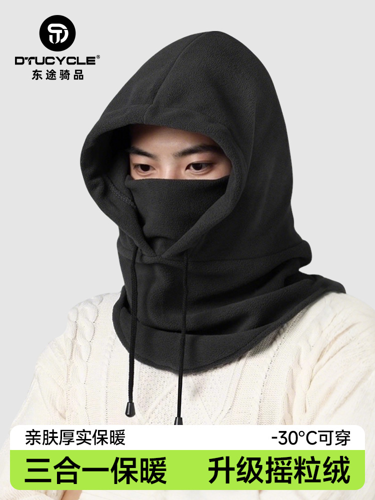 冬季户外运动滑雪面罩围脖一体帽摇粒绒防风防寒护脸骑行保暖头套