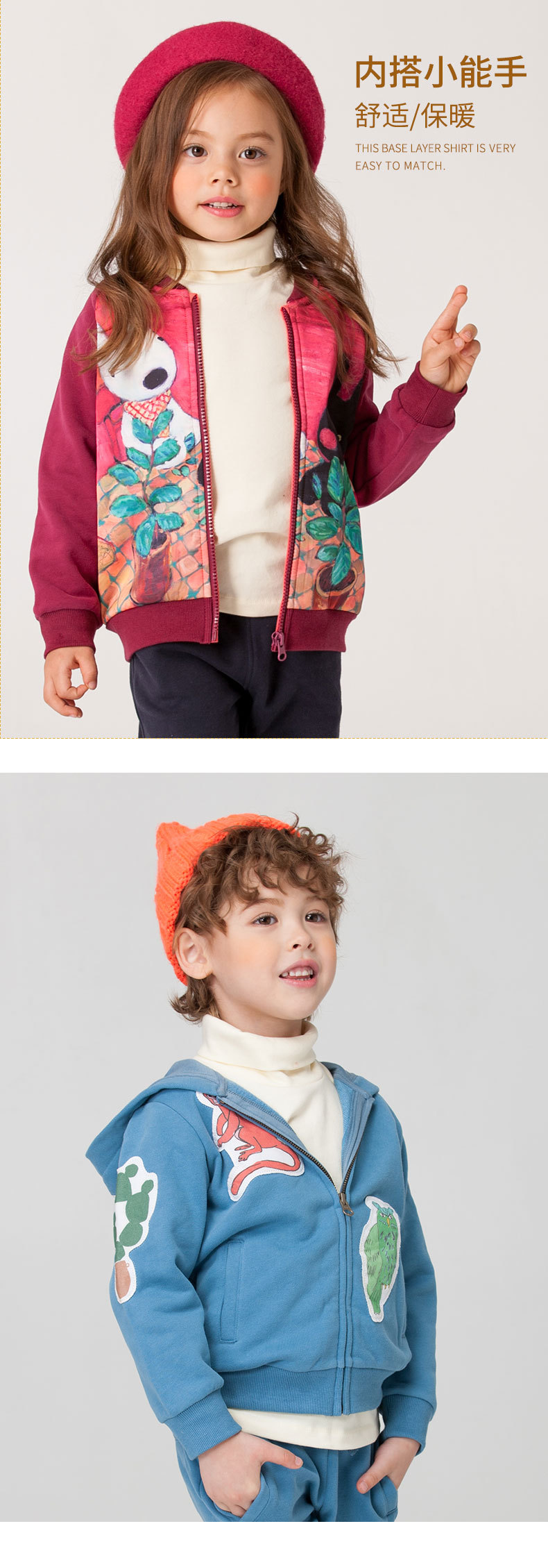 미니 존 어린이 높은 칼라 기지 셔츠 가을 새 소년과 소녀 따뜻한 가을 옷 어린이 내부 재킷 긴 소매