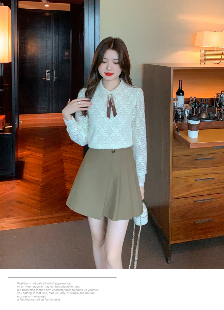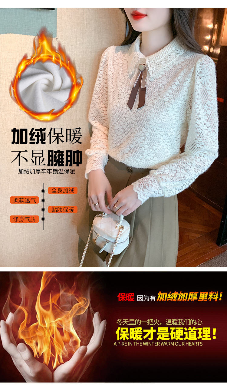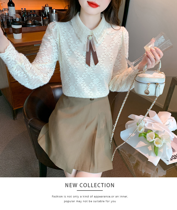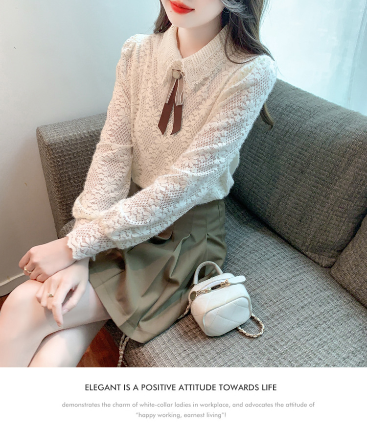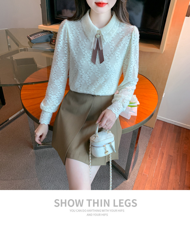 여성 Bowknot 셔츠 2024 겨울 새로운 패션 서양 스타일 틈새 최고의 프랑스 우아한 레이스베이스 셔츠스토어 가기
