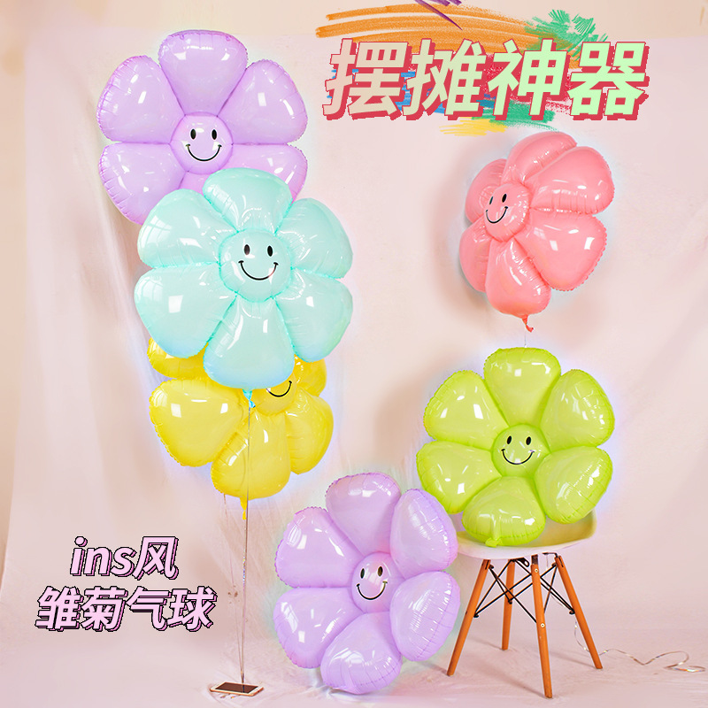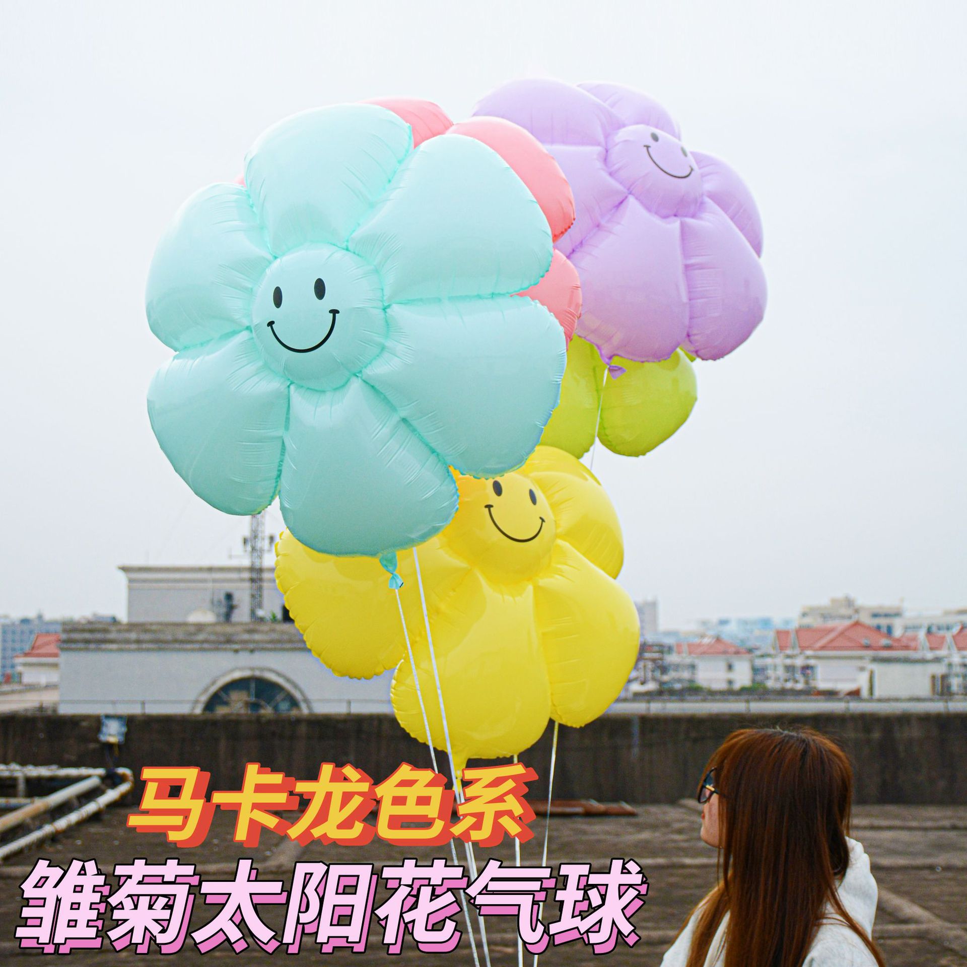 흰 데이지 풍선 계란 꽃 풍선 국화 인바람 생일 배열 스마일리 해바라기 꽃 풍선