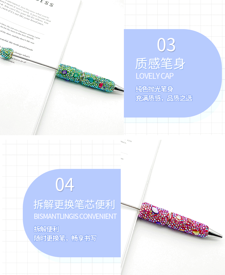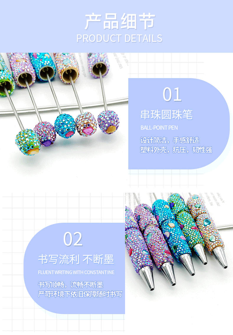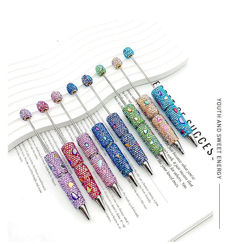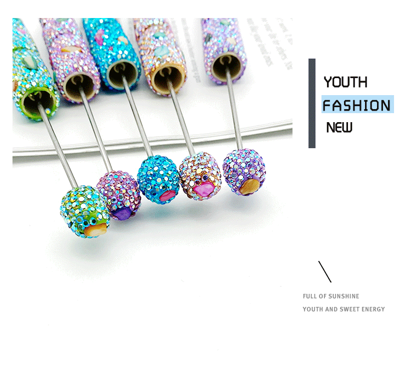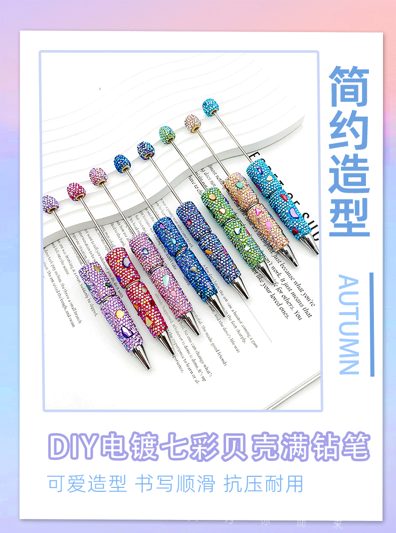 새로운 DIY 전기 도금 쉘 전체 다이아몬드 구슬 펜 창조적 인 다채로운 도금 수제 가방 다이아몬드 귀여운 펜 학생 선물 펜