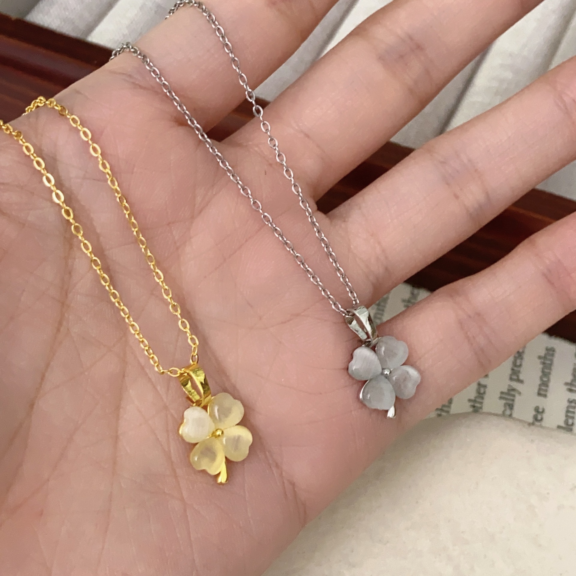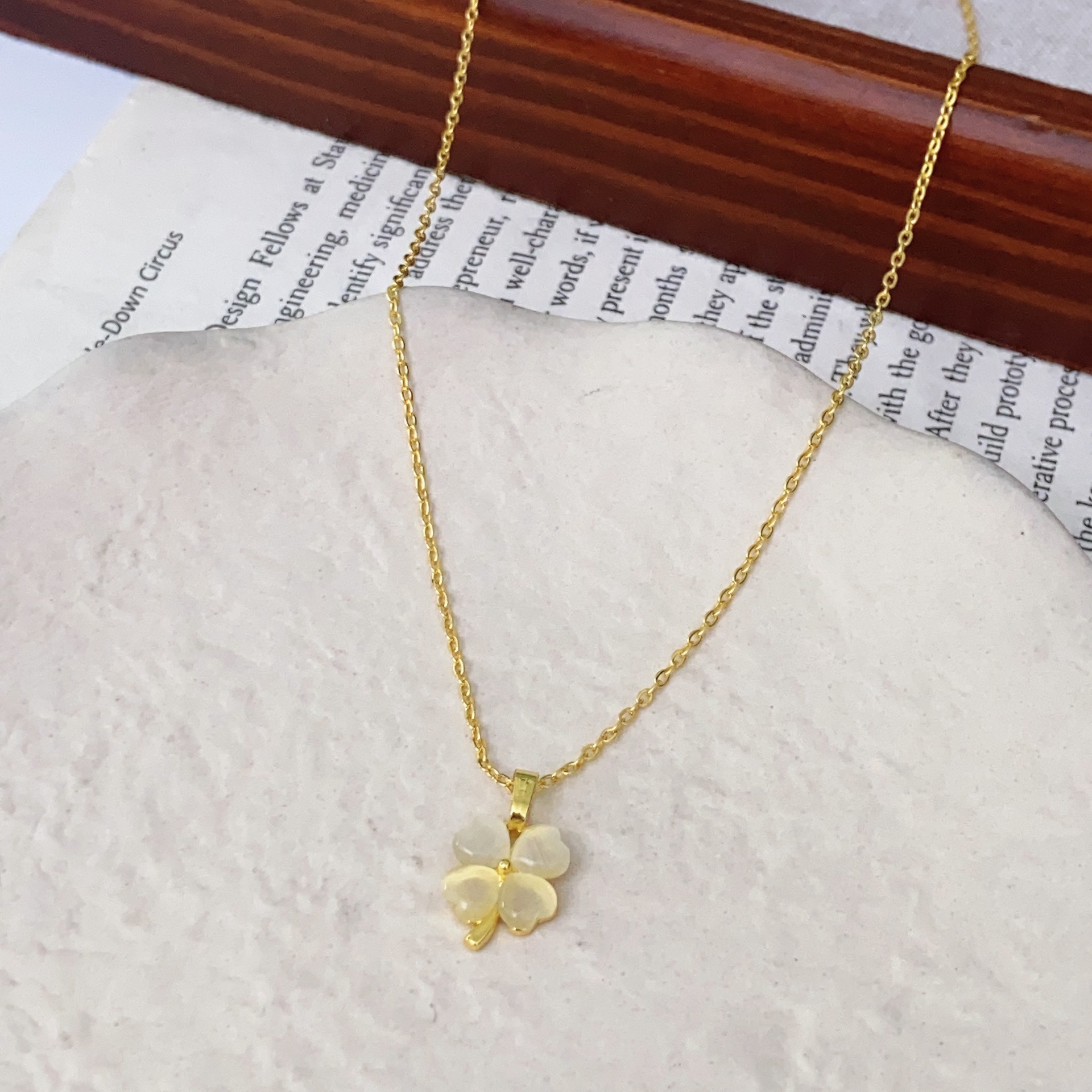 • 황금빛 행운의 네잎 클로버 꽃잎 목걸이 X4610A