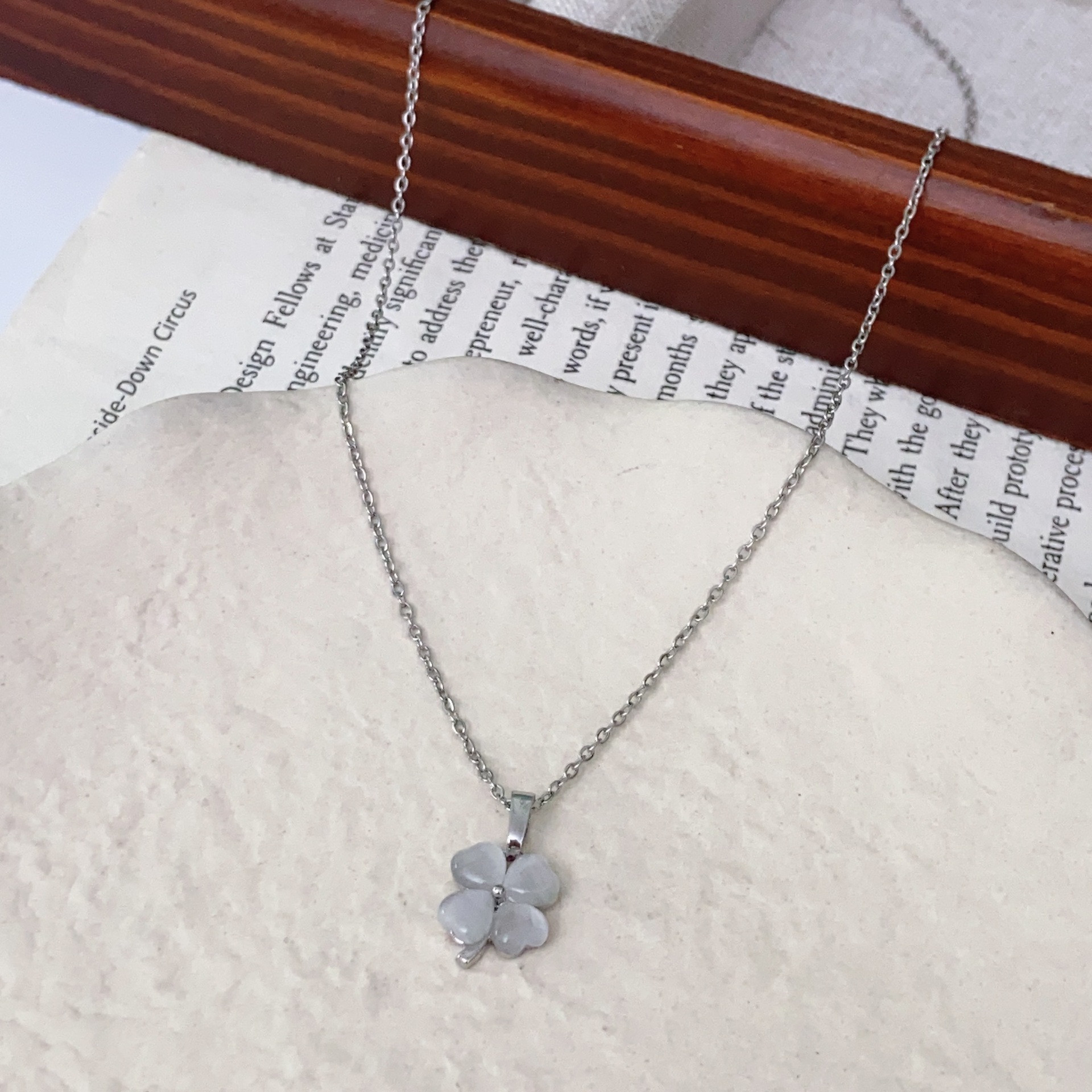 • 실버 행운의 네잎 클로버 꽃잎 목걸이 X4610B
