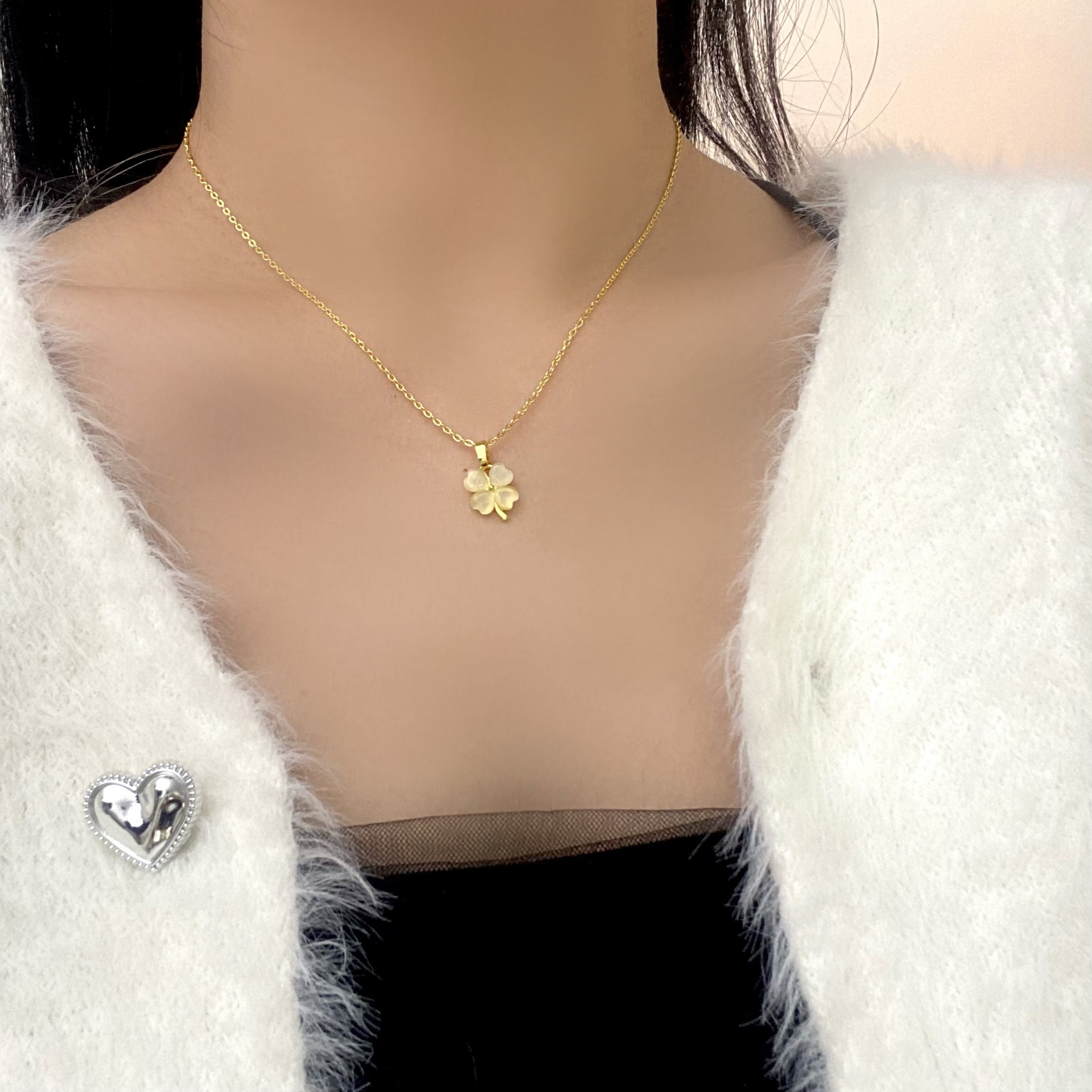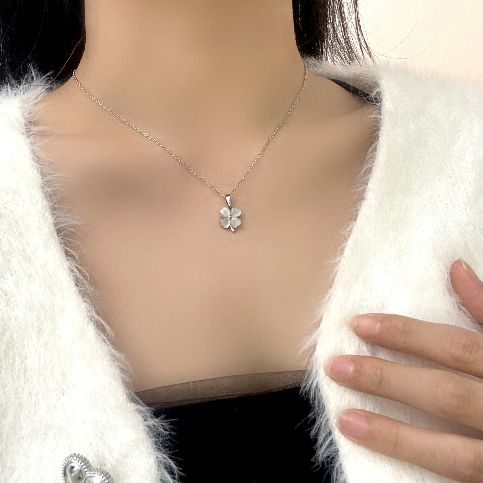 한국식 틈새 간단한 고양이 눈 4 잎 꽃 올 매치 쇄골 체인 여성 라이트 럭셔리 틈새 디자인 센스 패션 쥬얼리 목걸이