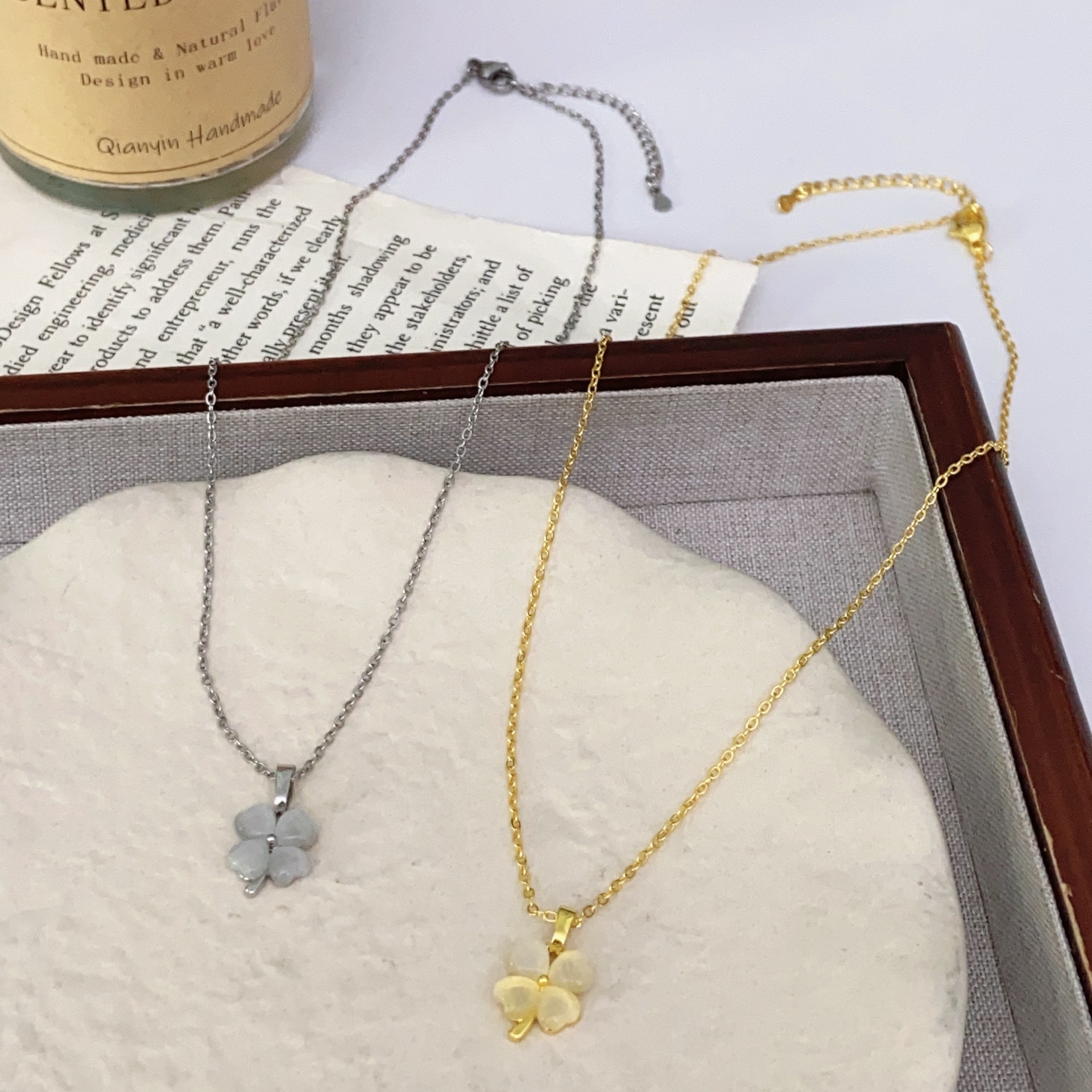 한국식 틈새 간단한 고양이 눈 4 잎 꽃 올 매치 쇄골 체인 여성 라이트 럭셔리 틈새 디자인 센스 패션 쥬얼리 목걸이스토어 가기