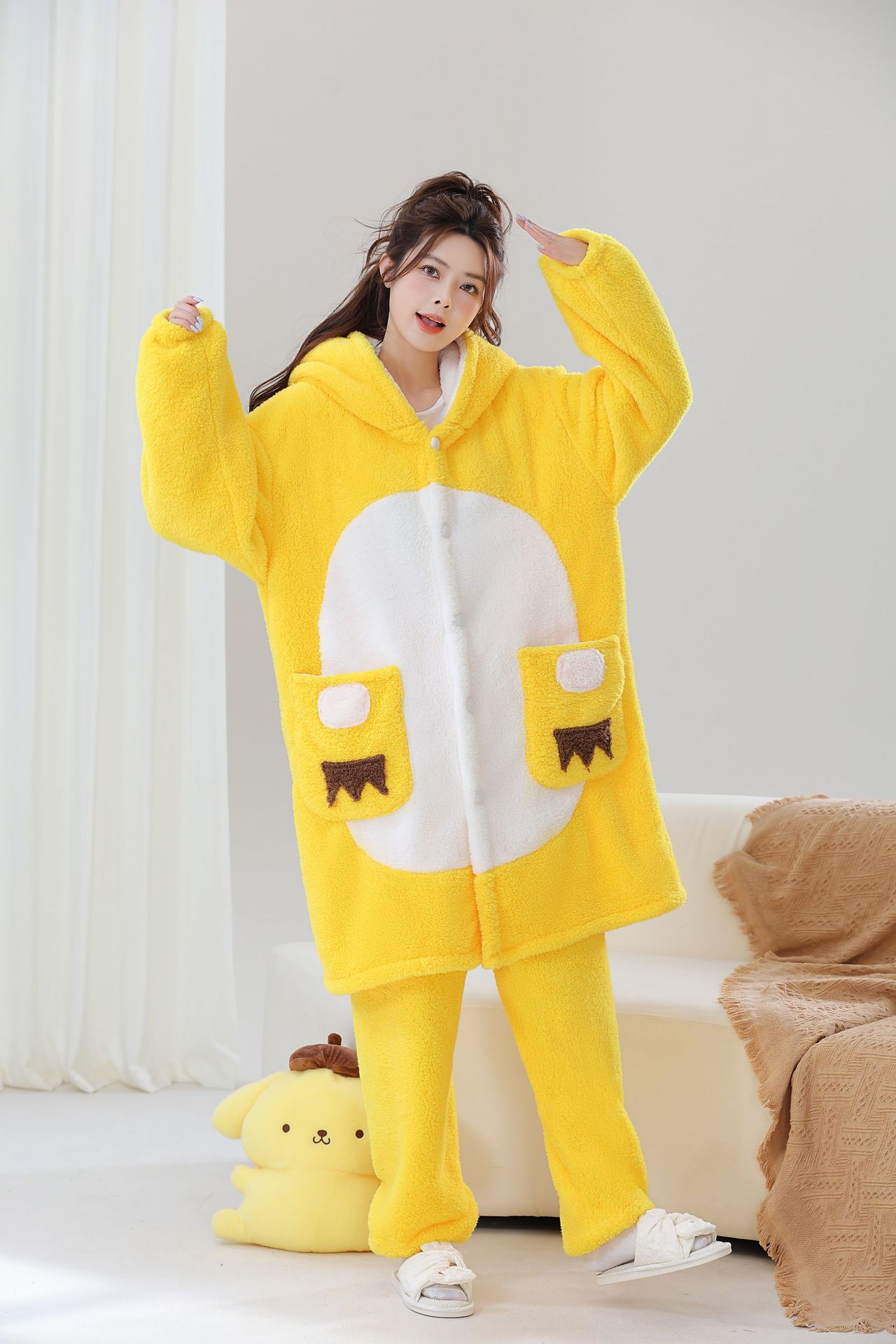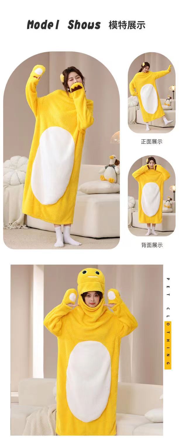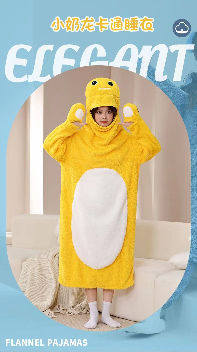 작은 우유 용 만화 동물 시아만 파자마 플란넬 가을과 겨울 남자와 여자의 집 옷 시아만 커플의 잠옷 새 겨울