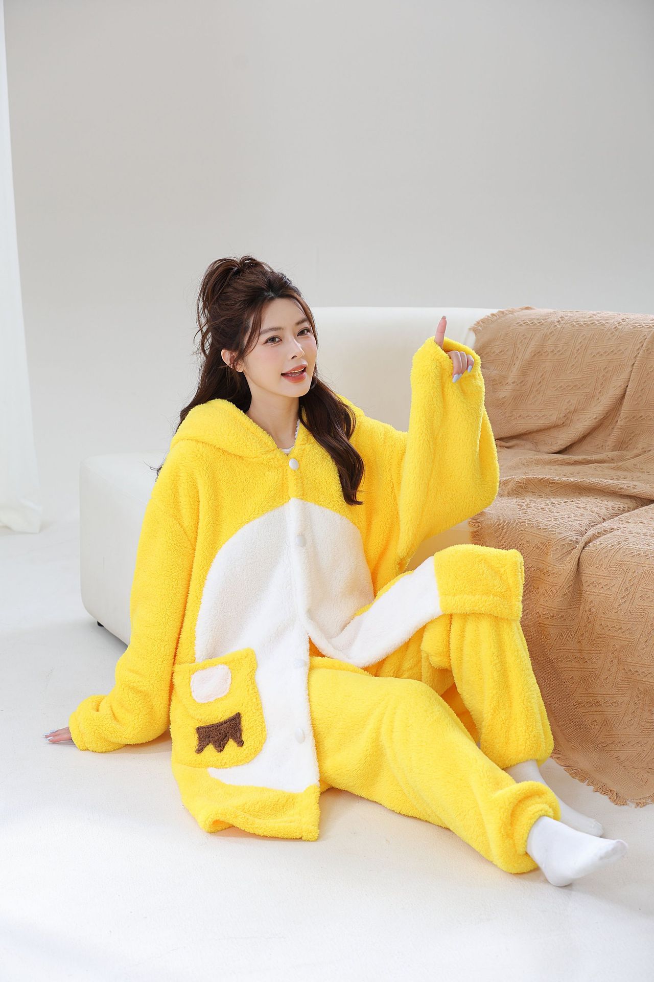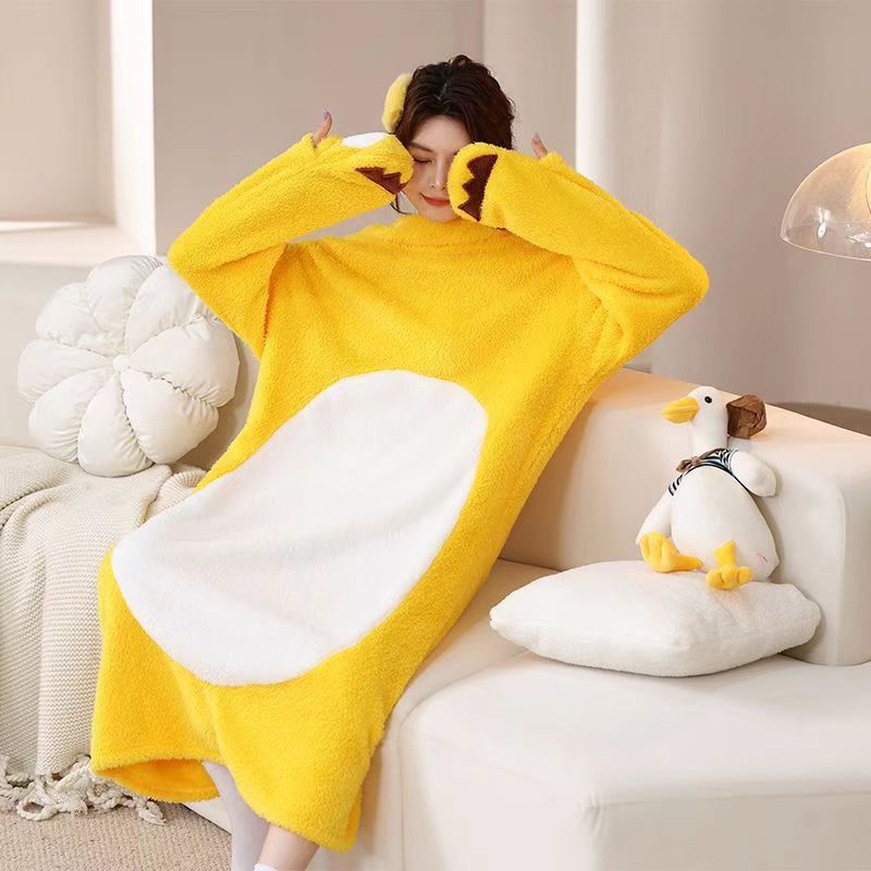 작은 우유 용 만화 동물 시아만 파자마 플란넬 가을과 겨울 남자와 여자의 집 옷 시아만 커플의 잠옷 새 겨울스토어 가기