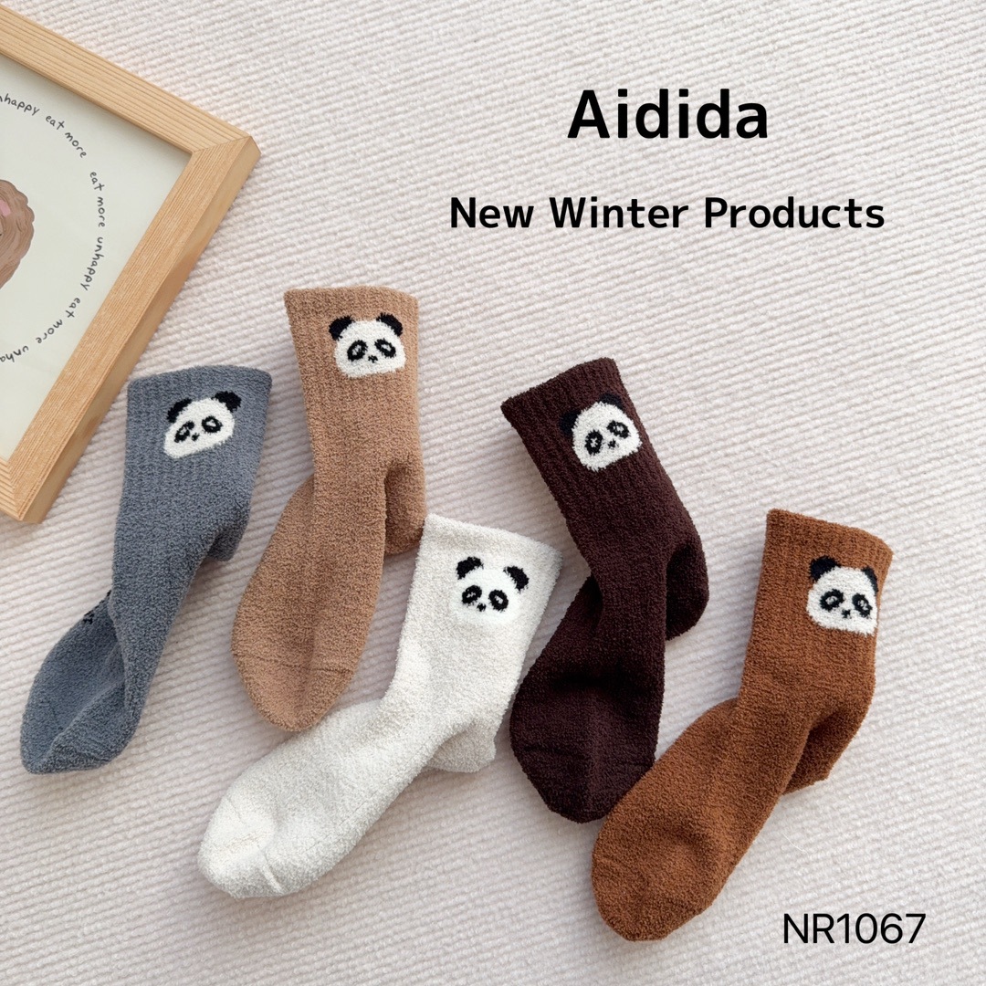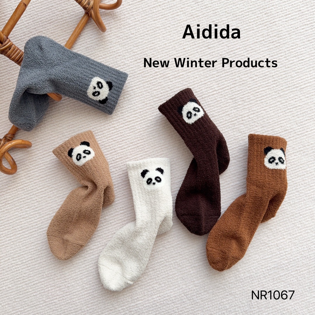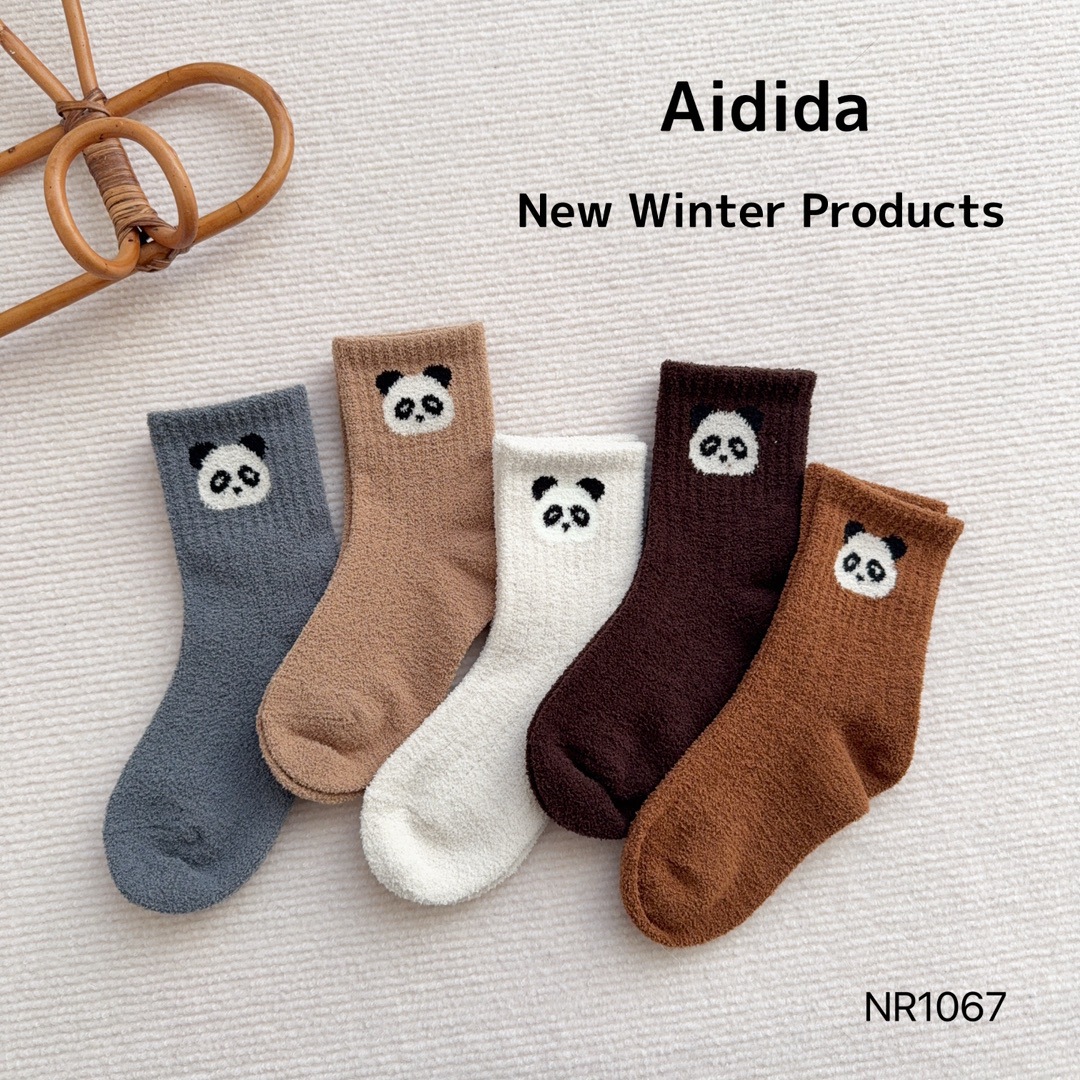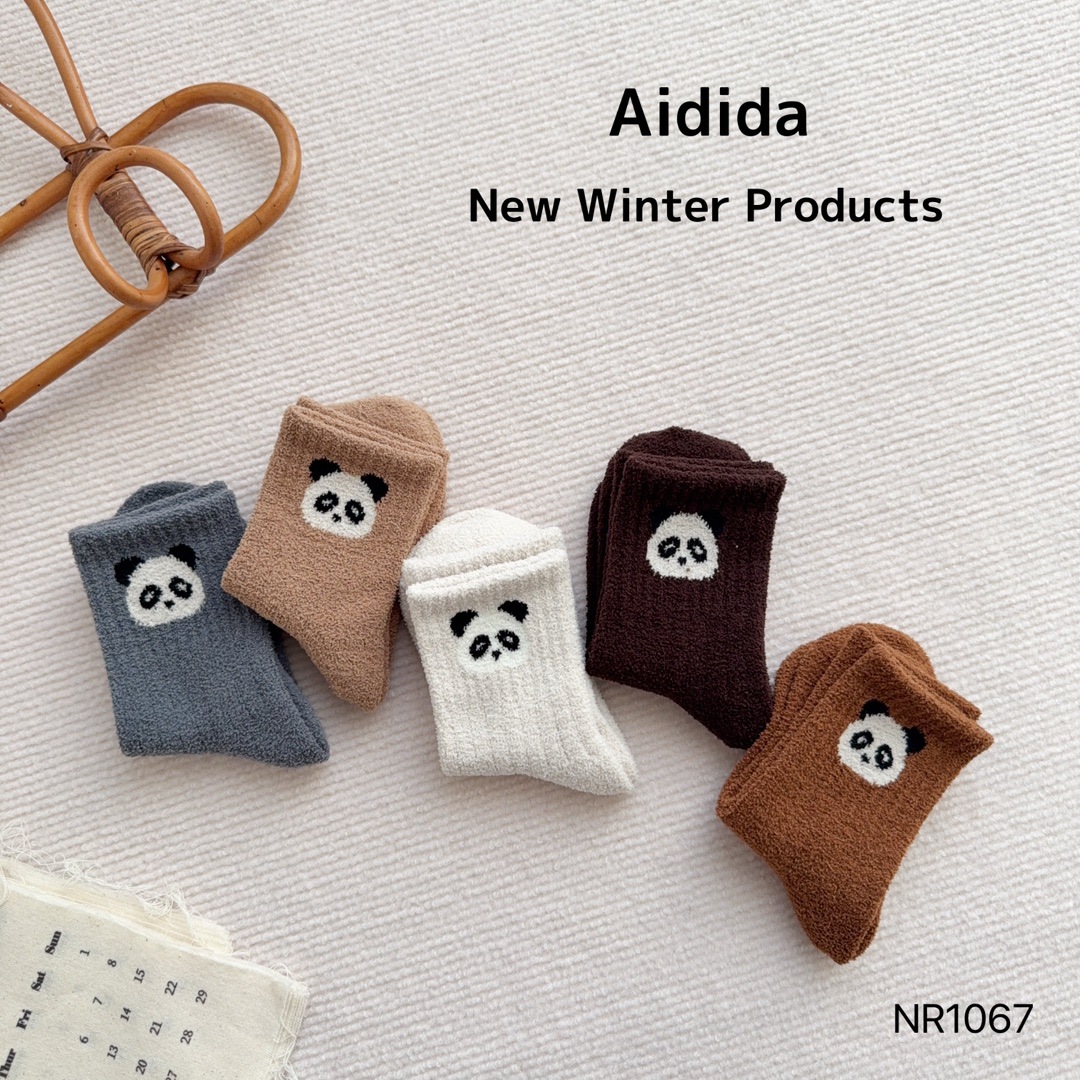 사랑 Dida 어린이 양말 겨울 두꺼운 산호 양털 소년 만화 작은 팬더 귀여운 얼굴 열 저장 따뜻한 아기 양말