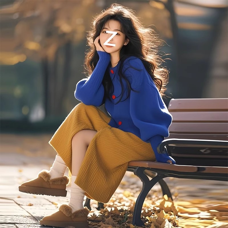 겨울 게으른 스타일 여성의 2024 새로운 패션 우아한 하이 엔드 니트 카디건 스커트 투피스 세트스토어 가기