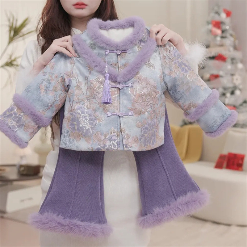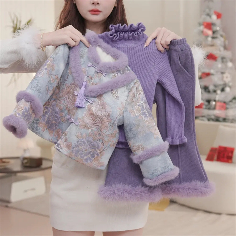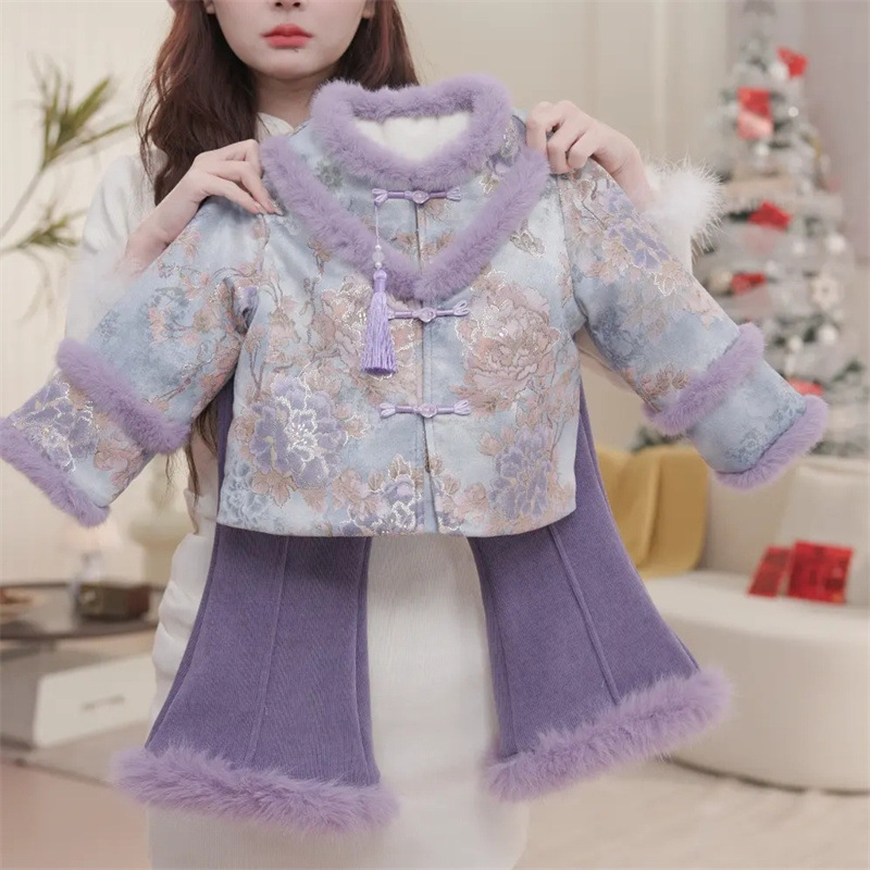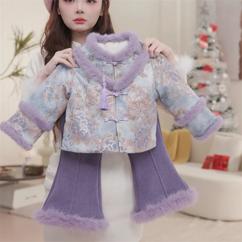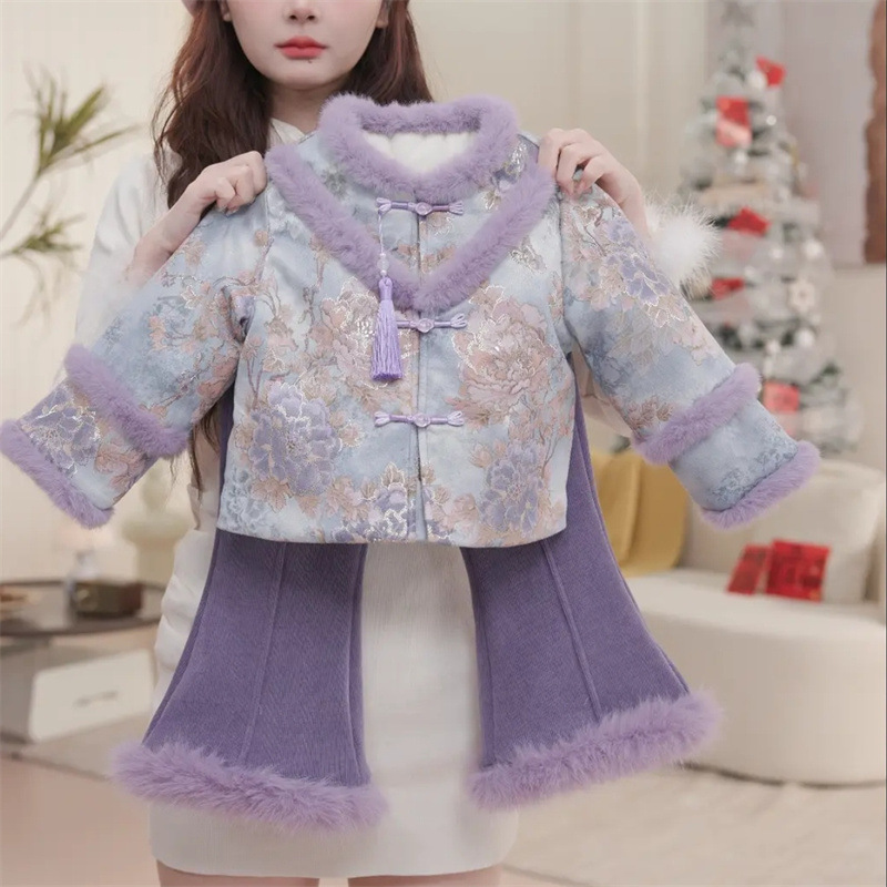 [신중국식 루오] 닝리걸 가을과 겨울 청삼 원피스 당나라 원피스 공주 올중국식 소녀 자켓 세트