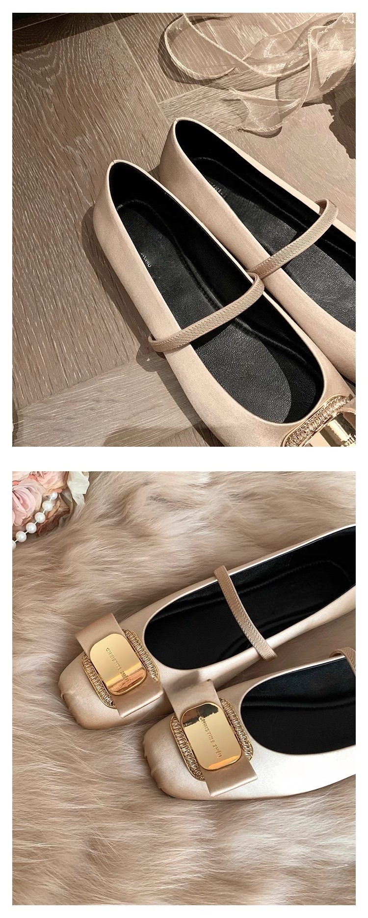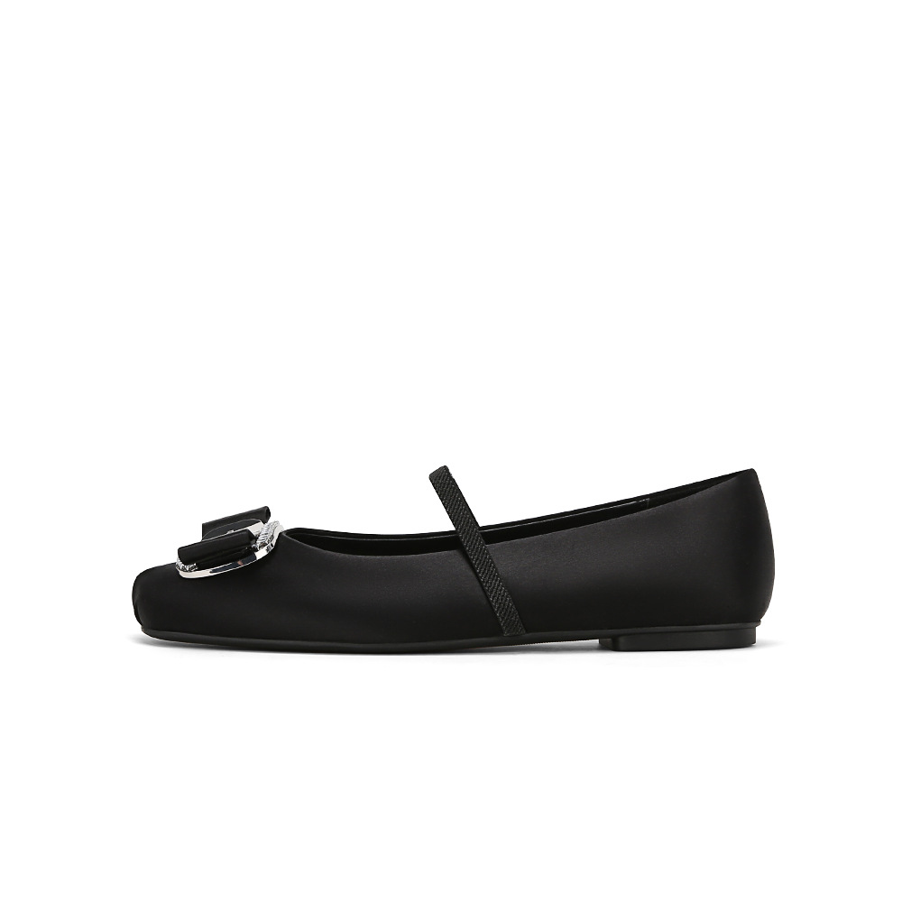 Cowhide 버전 ~ Su Yinyin 작은 사각형 머리 모조 다이아몬드 활 얕은 입 금속 플랫 슈즈 여성 발레 슈즈스토어 가기