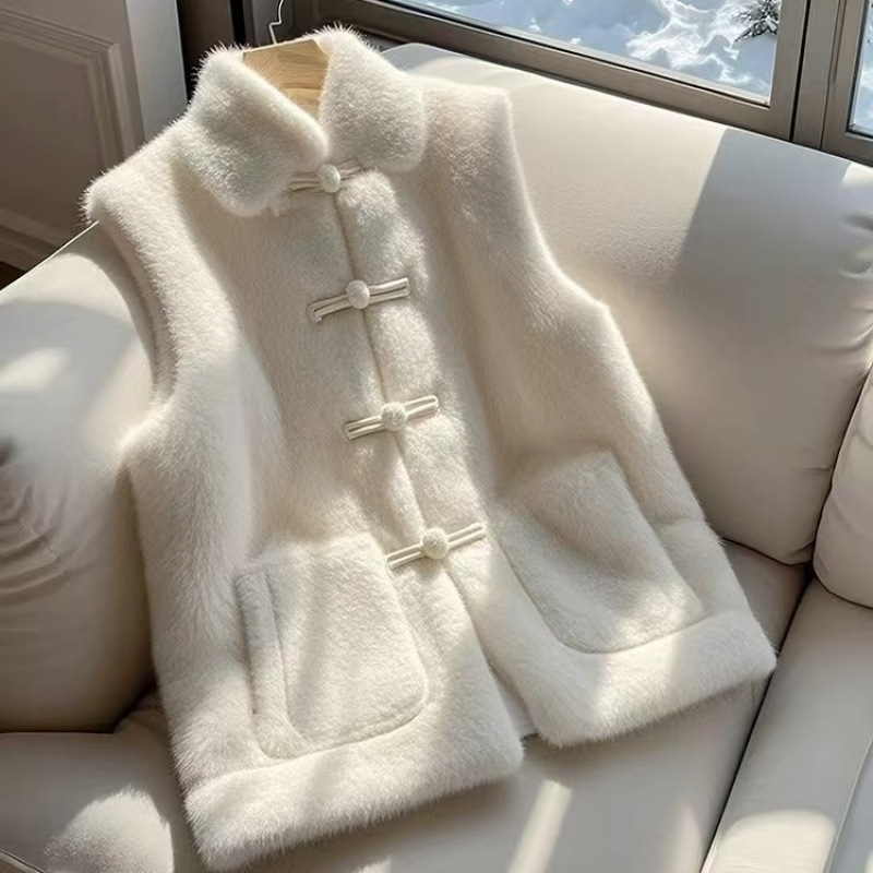 작은 새로운 중국 양고기 봉제 조끼 코트 여성 2025 년 겨울 여성을위한 새로운 두꺼운 국가 스타일 버클 조끼스토어 가기