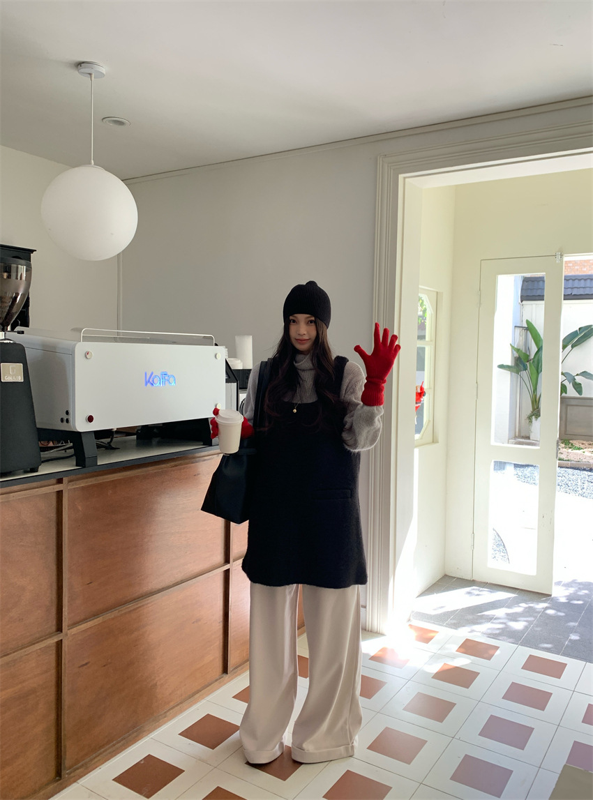 리얼 샷 이른 봄 새로운 한국 스타일 세련된 빈티지 베이스 스웨터 두꺼운 민소매 U 넥 스웨터 조끼 원피스 세트 여성스토어 가기