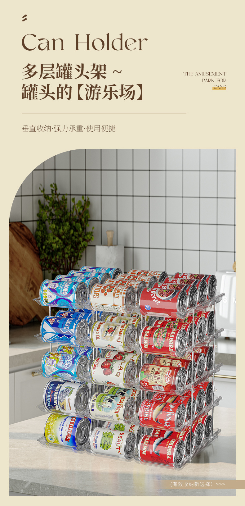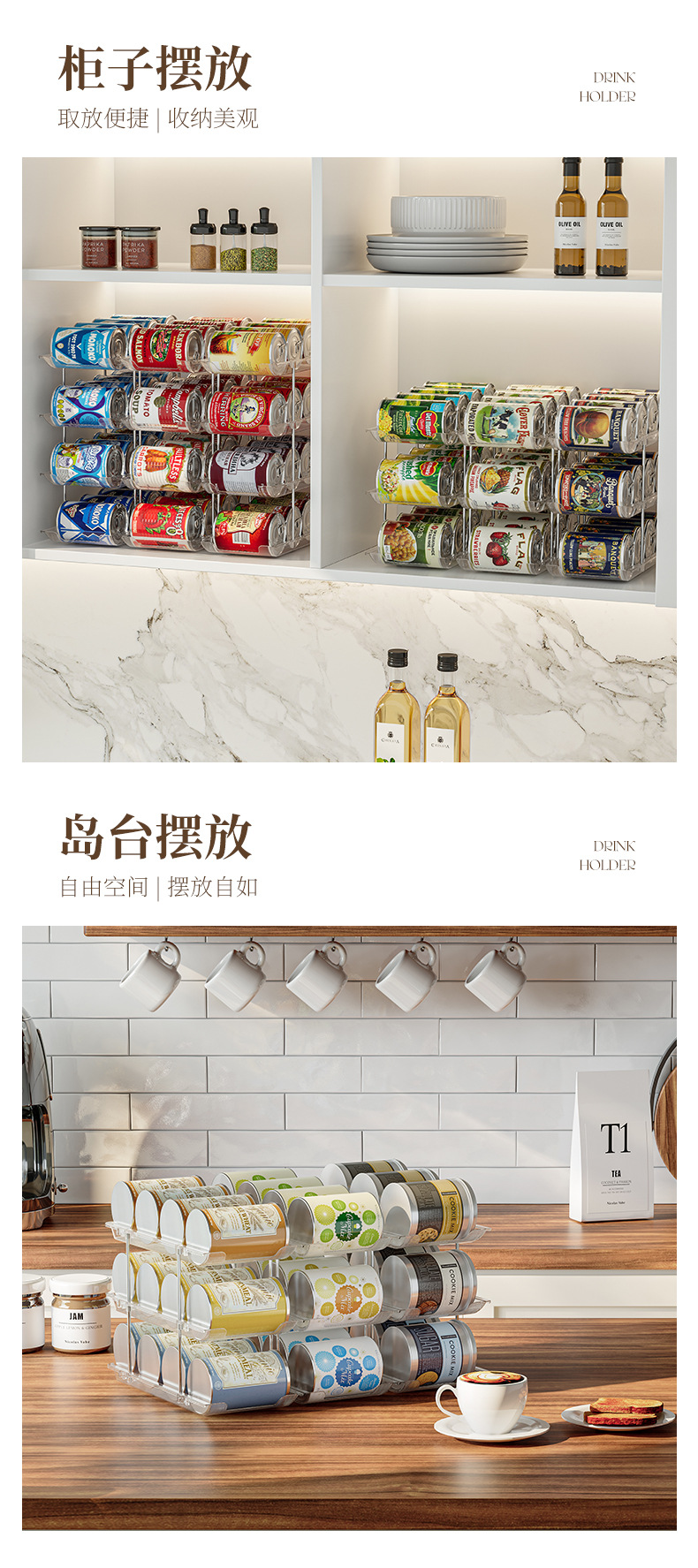다층 통조림 보관 랙 쌓을 수있는 맥주 및 음료 투명 저장 랙 무료 조합 통조림 데스크탑 스토리지 랙스토어 가기