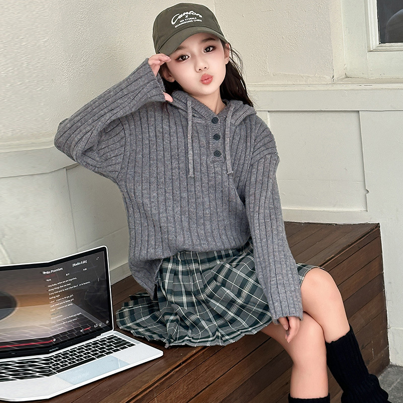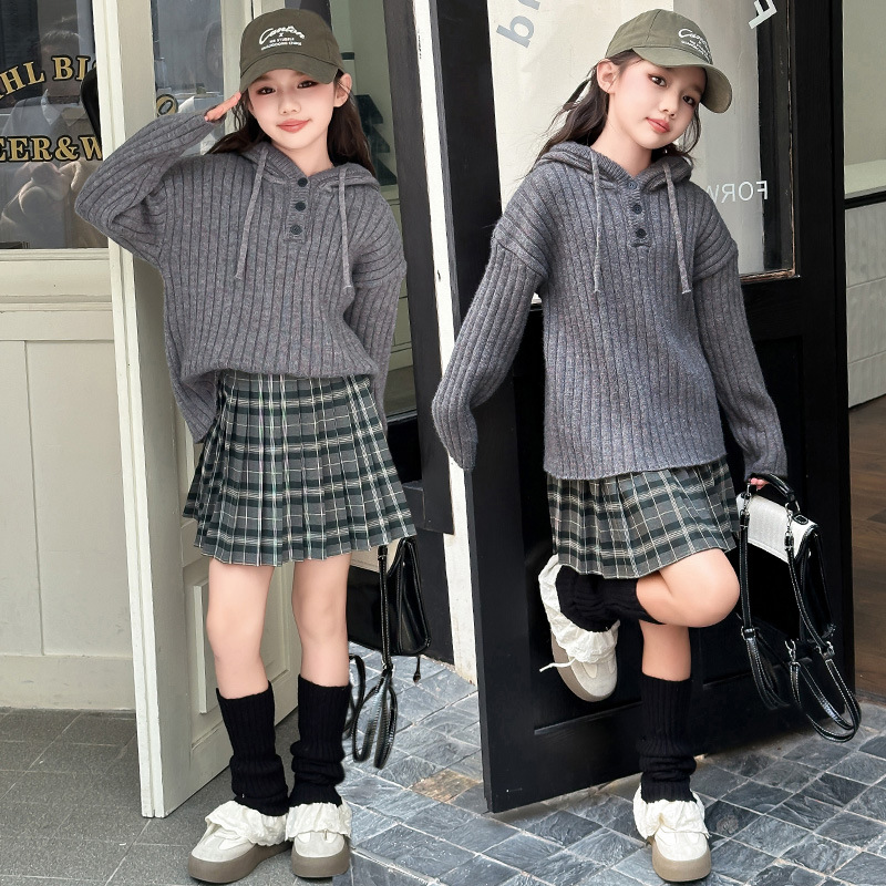 소녀 가을 투피스 세트 2025 새로운 어린이 유행 한국 스웨터 큰 어린이 소녀 가을 주름 치마스토어 가기