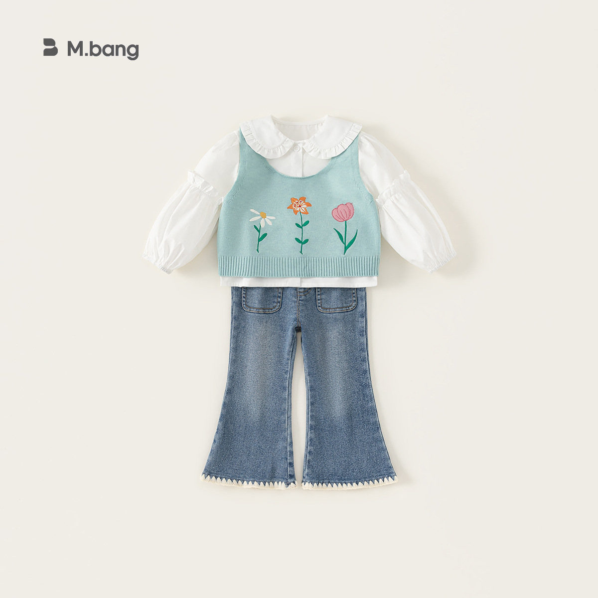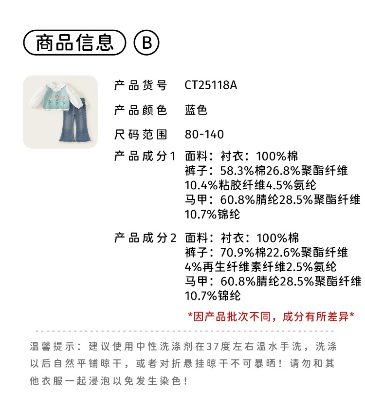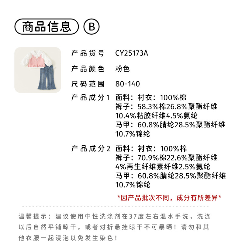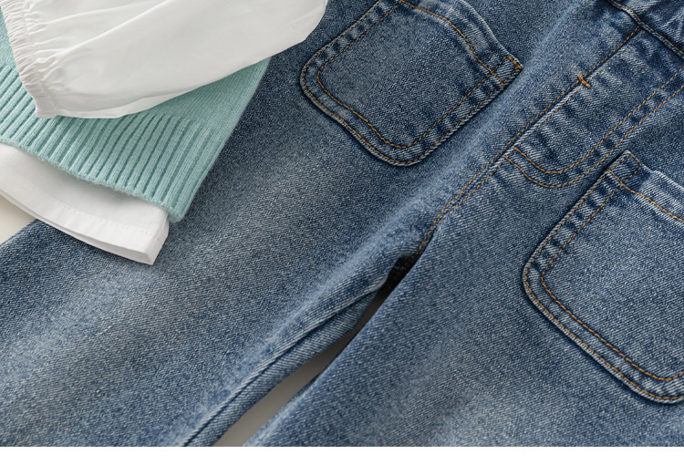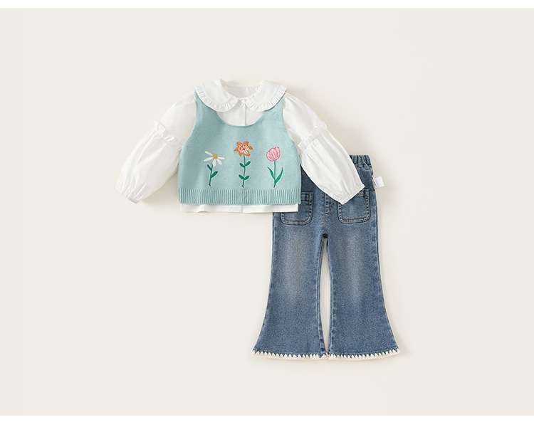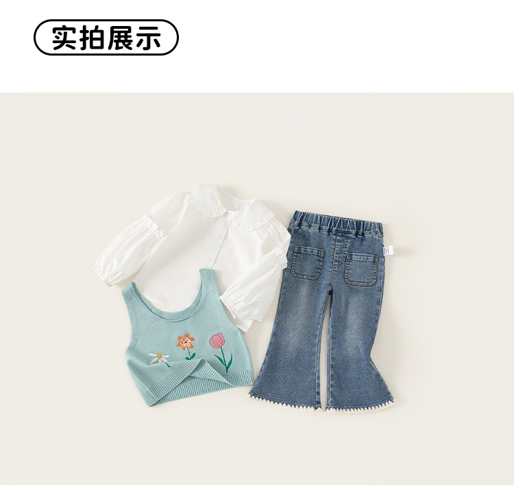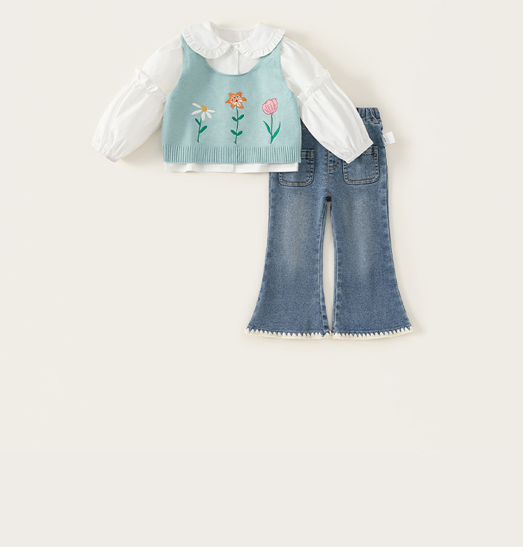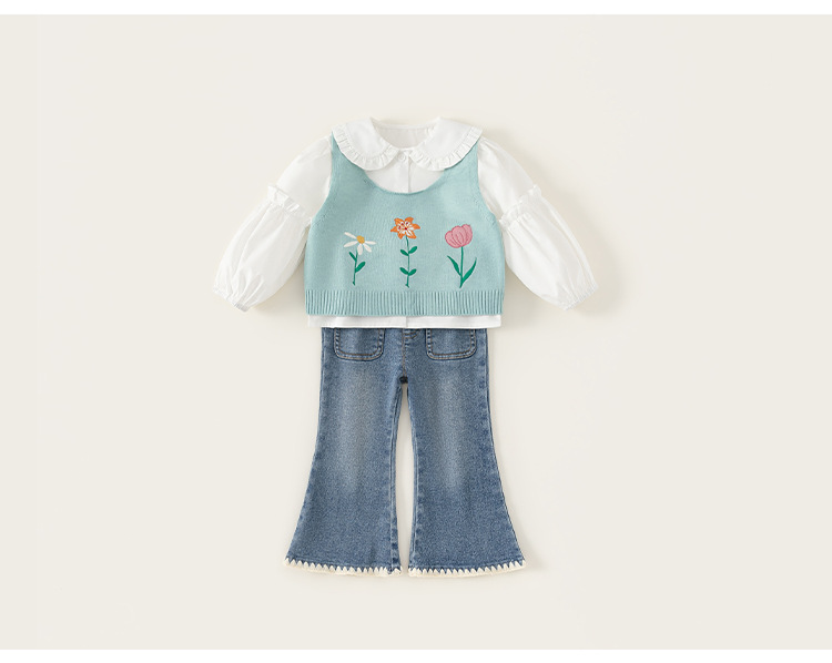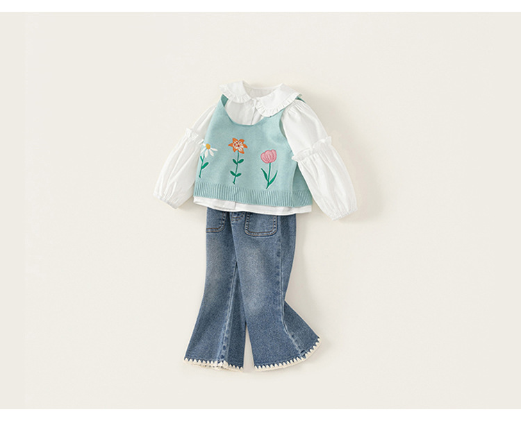 유바오 아동복 봄 여아 세트 2026 신상 아동 니트 스웨터 조끼 셔츠 청바지 3종 세트스토어 가기