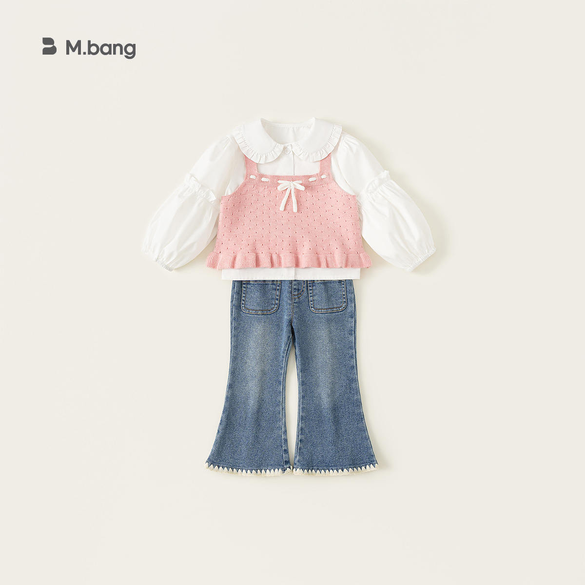 유바오 아동복 봄 여아 세트 2026 신상 아동 니트 스웨터 조끼 셔츠 청바지 3종 세트