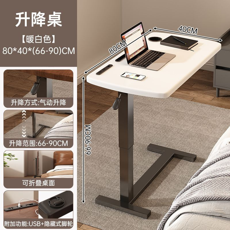 • [고급 접이식 데스크탑] 따뜻한 흰색 80*40cm 공압 리프트