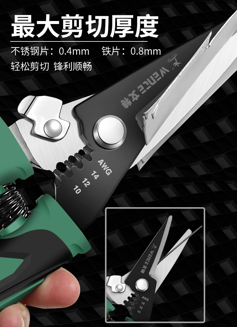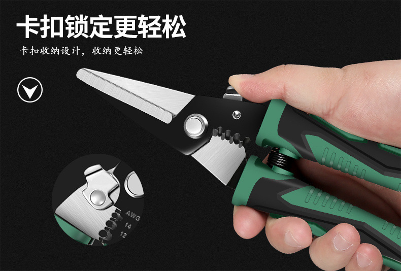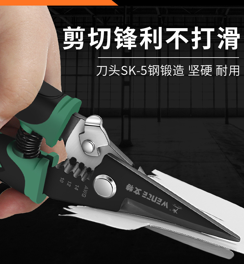 • 녹색 및 검정색 다기능 철 가위 - 직선(벗길 수 있음)