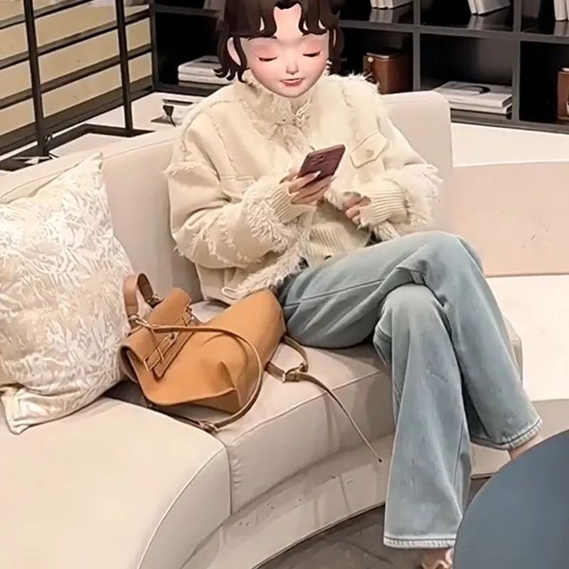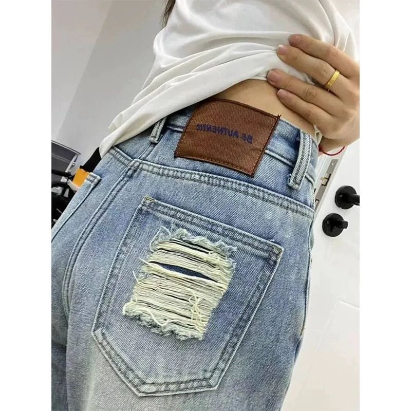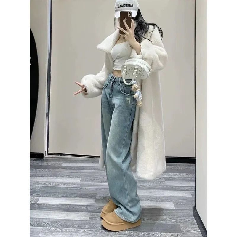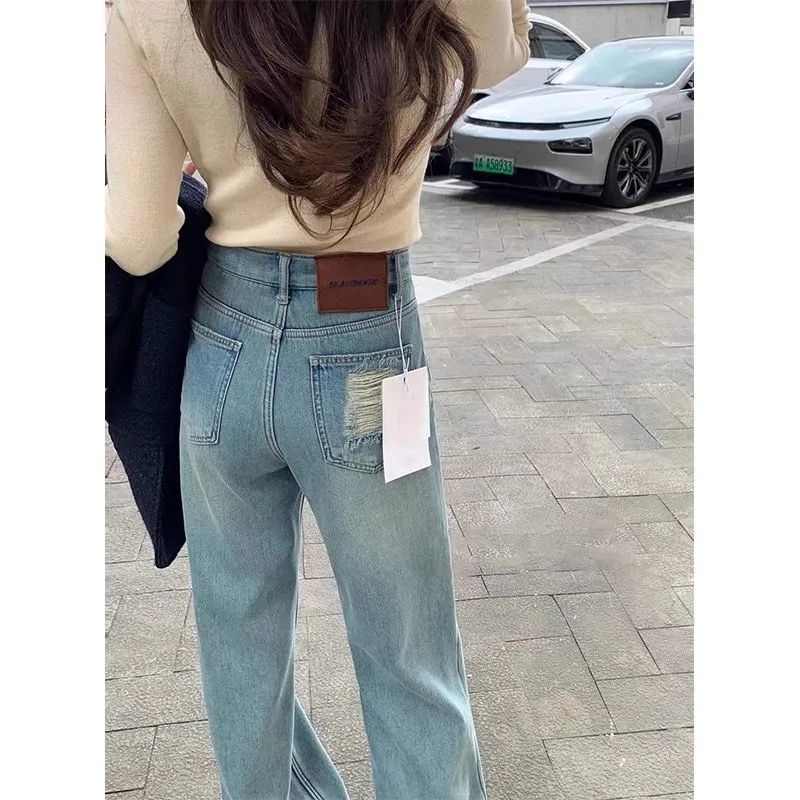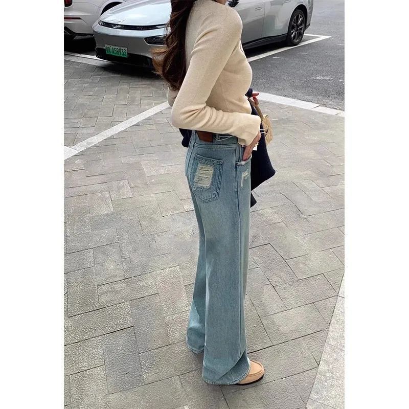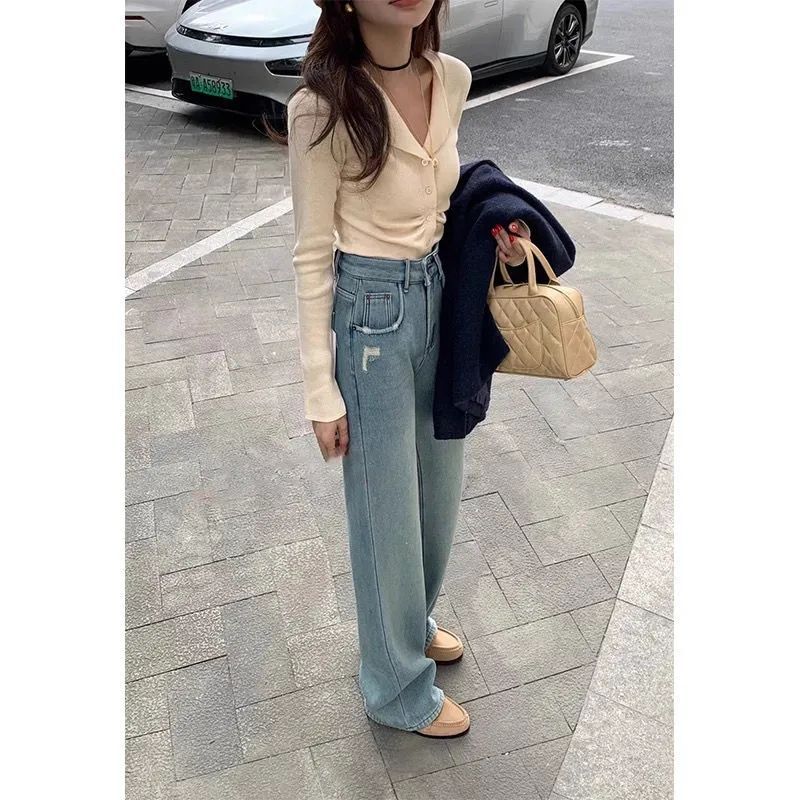 2025 봄과 여름 새로운 청바지 여성의 좁은 가장자리 넓은 다리 바지 높은 허리 느슨한 슬리밍 스트레이트 플로어 바지스토어 가기