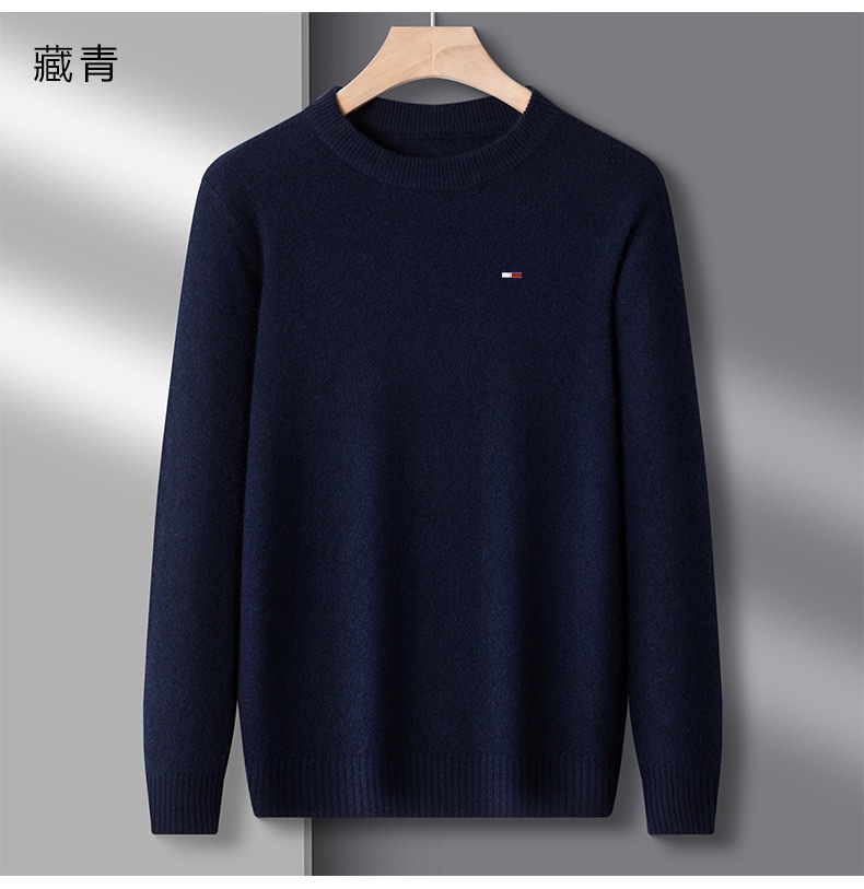 미국 토미 울 스웨터 남자 라운드 넥 두꺼운 중년 캐주얼 패션 캐시미어 니트 베이스 셔츠