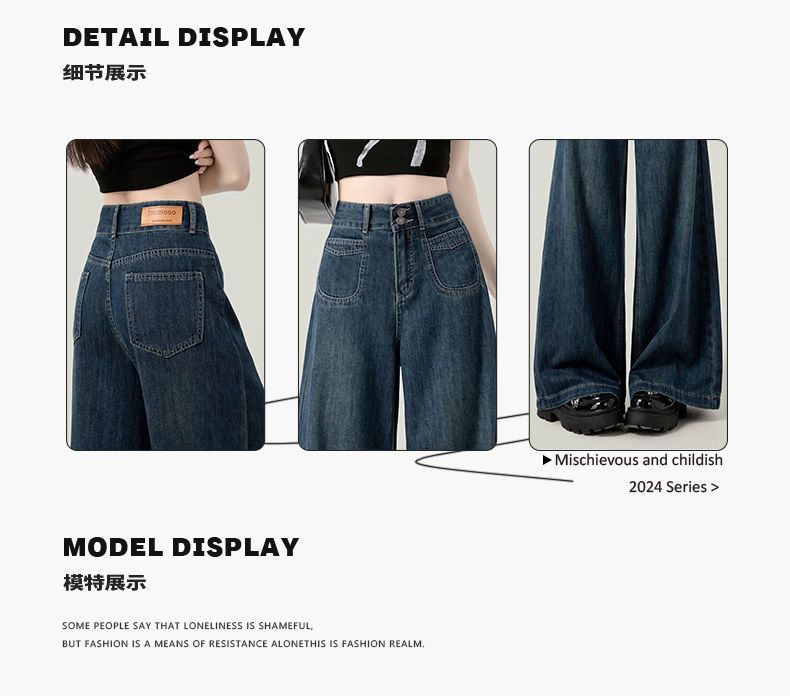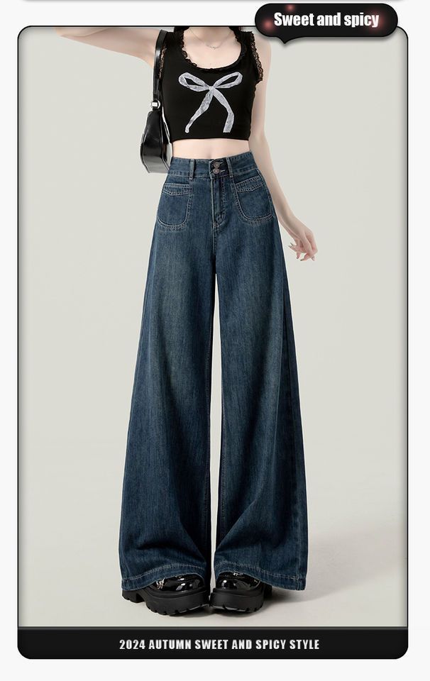2025 다크 블루 높은 허리 넓은 다리 청바지 여자 여름 모든 경기 슬림 모양 가을 느슨한 스트레이트 바지 봄과 가을스토어 가기