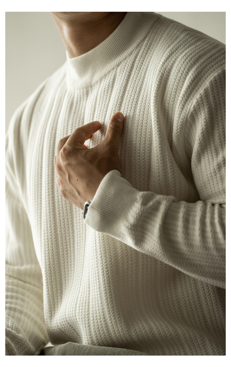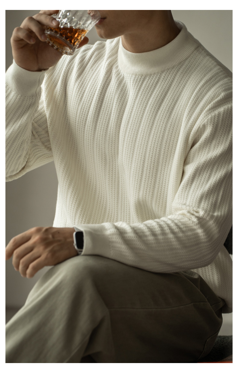 미국식 14바늘 물결무늬 스몰 미드넥 니트 남성용 신상품 2025 겨울 따뜻한 반하이넥 스웨터 베이스 셔츠