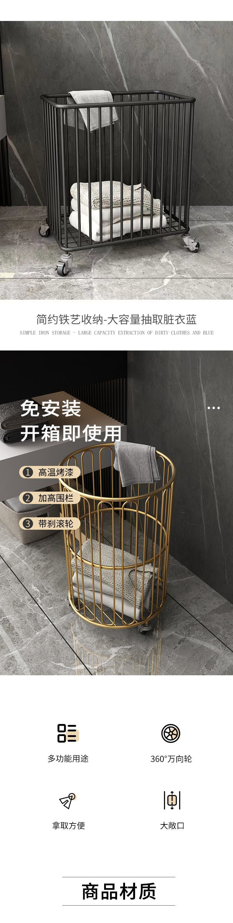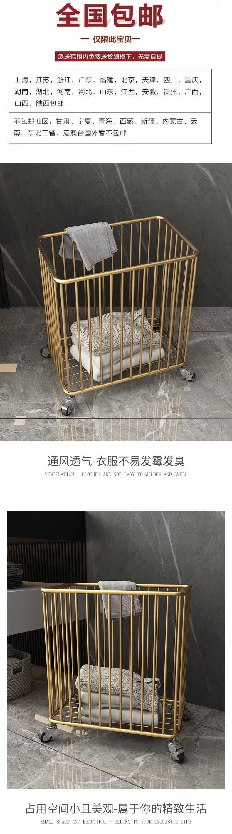 • 직사각형 더러운 옷 바구니 - 금색 바퀴
