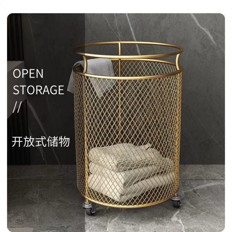 • 그리드 - 둥근 더러운 옷 바구니 - 바퀴가 달린 금색