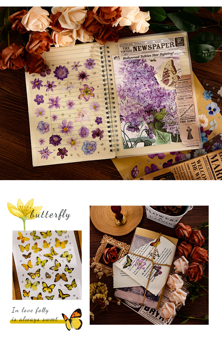 나비 정원 애완 동물 손 계정 스티커 세트 방수 투명 물 컵 붙여 넣기 장식 소재 가방 휴대 전화 케이스 스티커