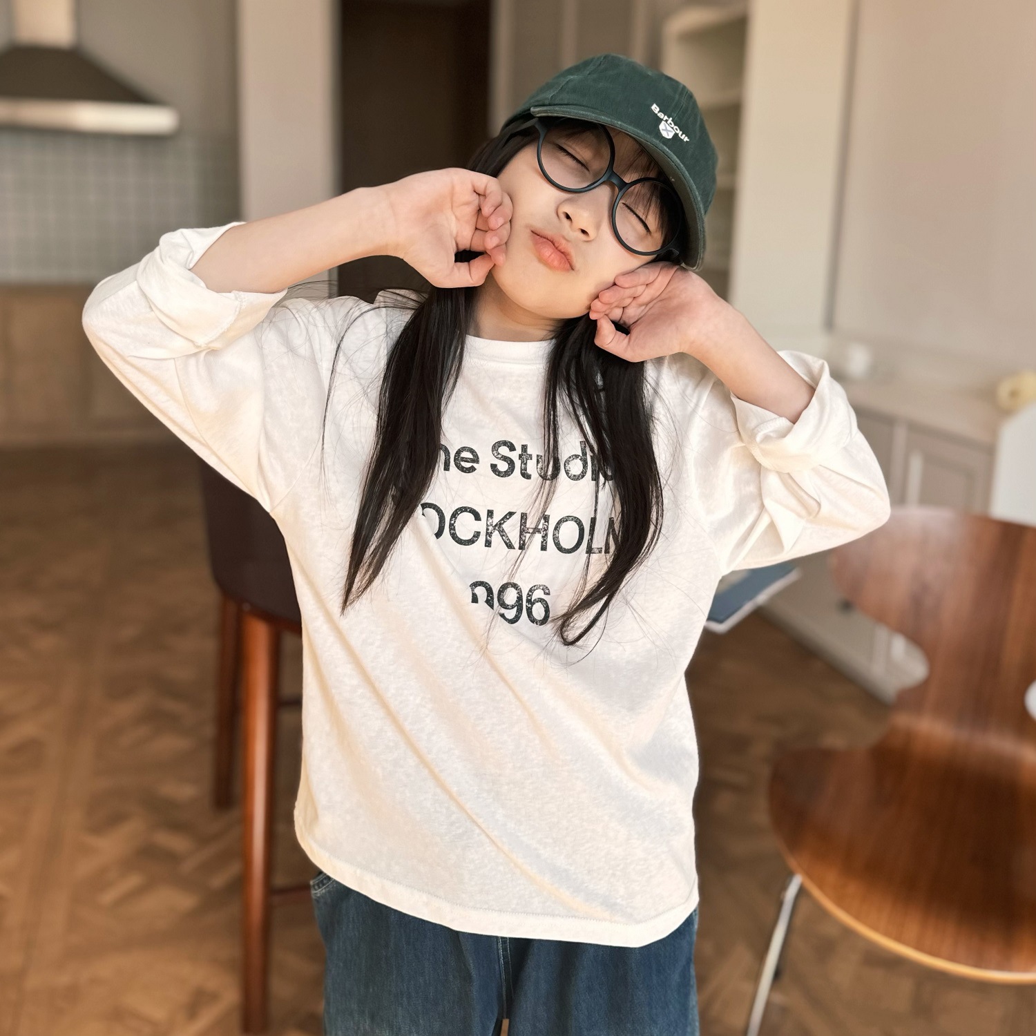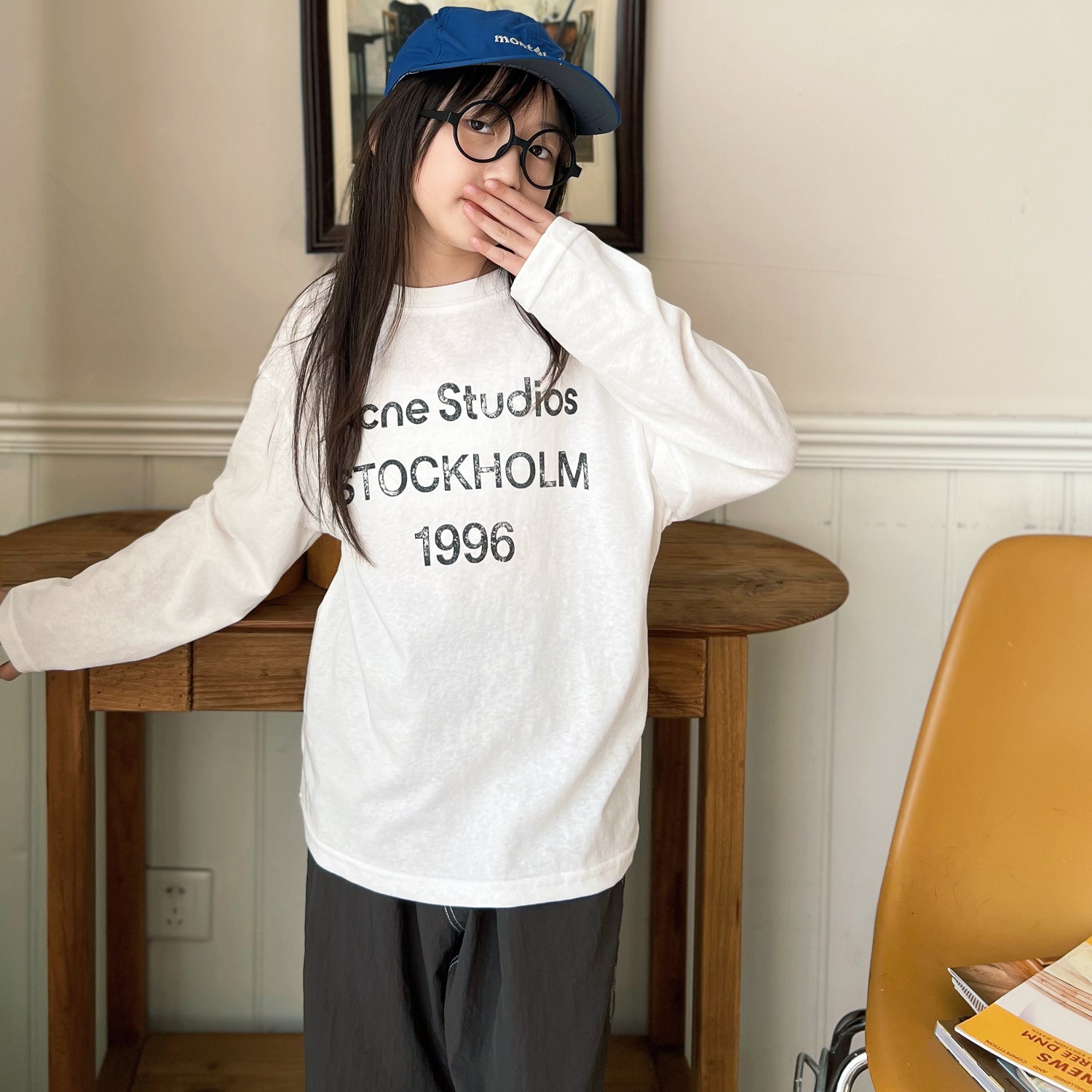 2025 봄 여름 새로운 스타일 어린이 소년 소녀 인쇄 문자 부드럽고 밀랍 같은 긴팔 다목적 자외선 차단제 티셔츠 부모-자식 재고 있음