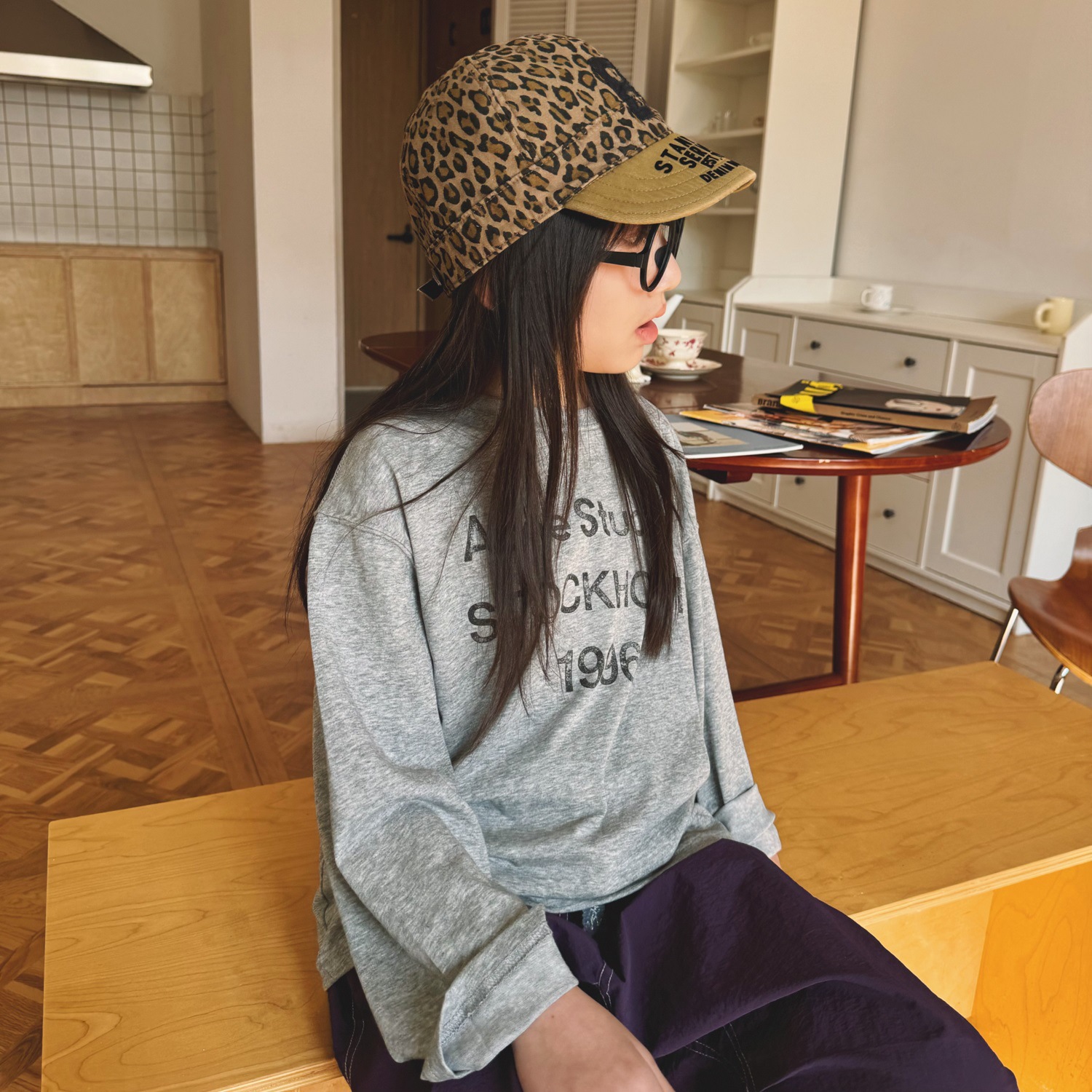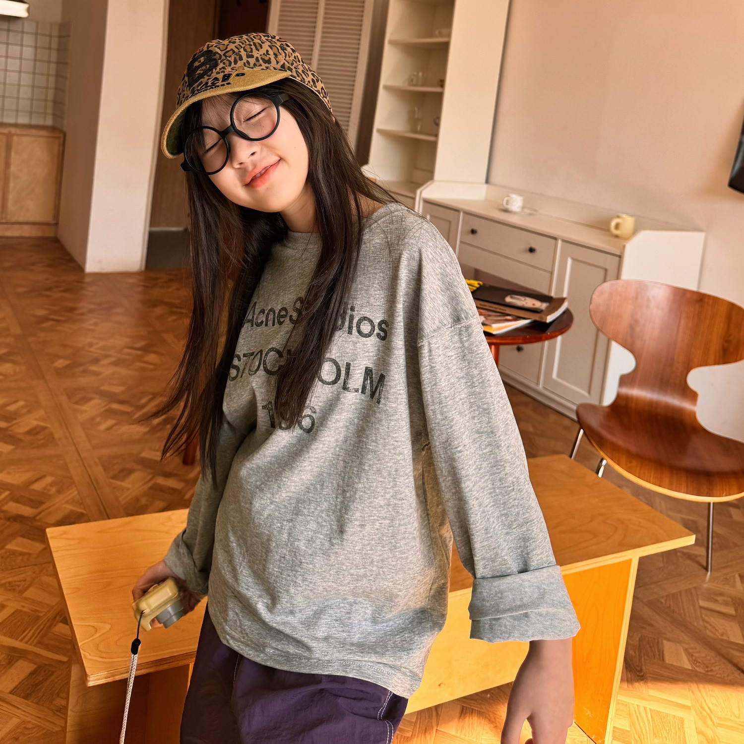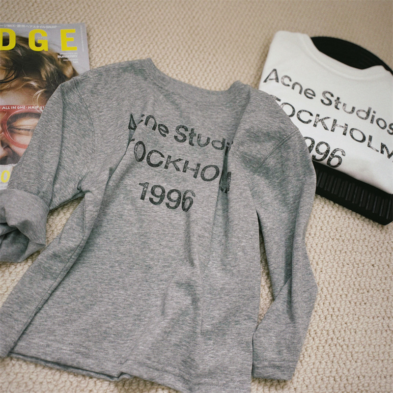 • 그레이 프린트 레터 긴팔 자외선 차단 티셔츠