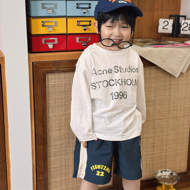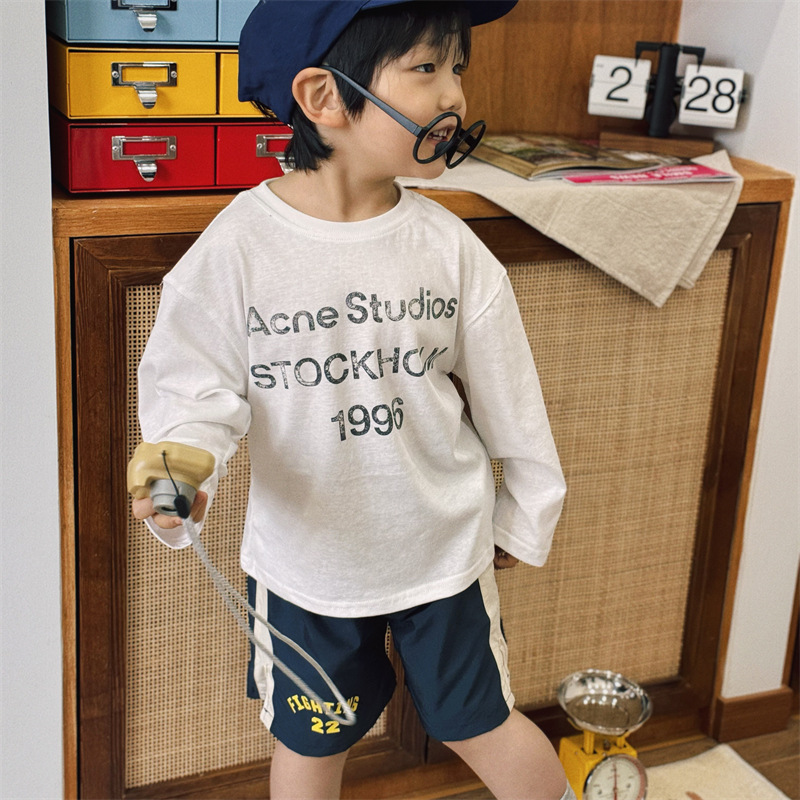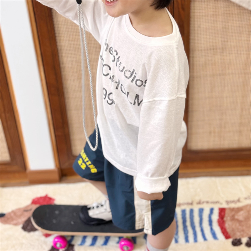 2025 봄 여름 새로운 스타일 어린이 소년 소녀 인쇄 문자 부드럽고 밀랍 같은 긴팔 다목적 자외선 차단제 티셔츠 부모-자식 재고 있음스토어 가기